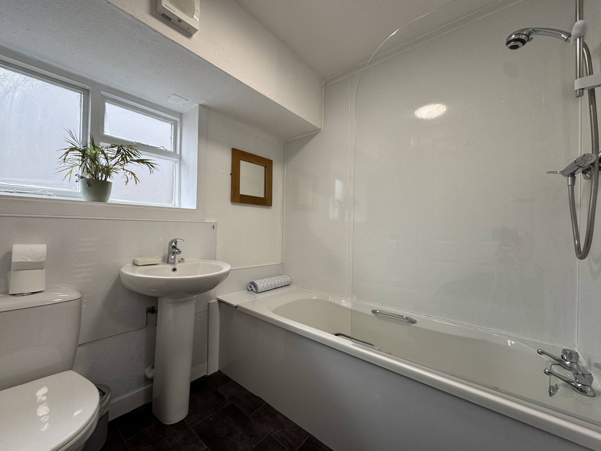 The property has a main family bathroom featuring a spacious shower over bath, stylish contemporary fittings, and a separate WC and handbasin for added convenience.