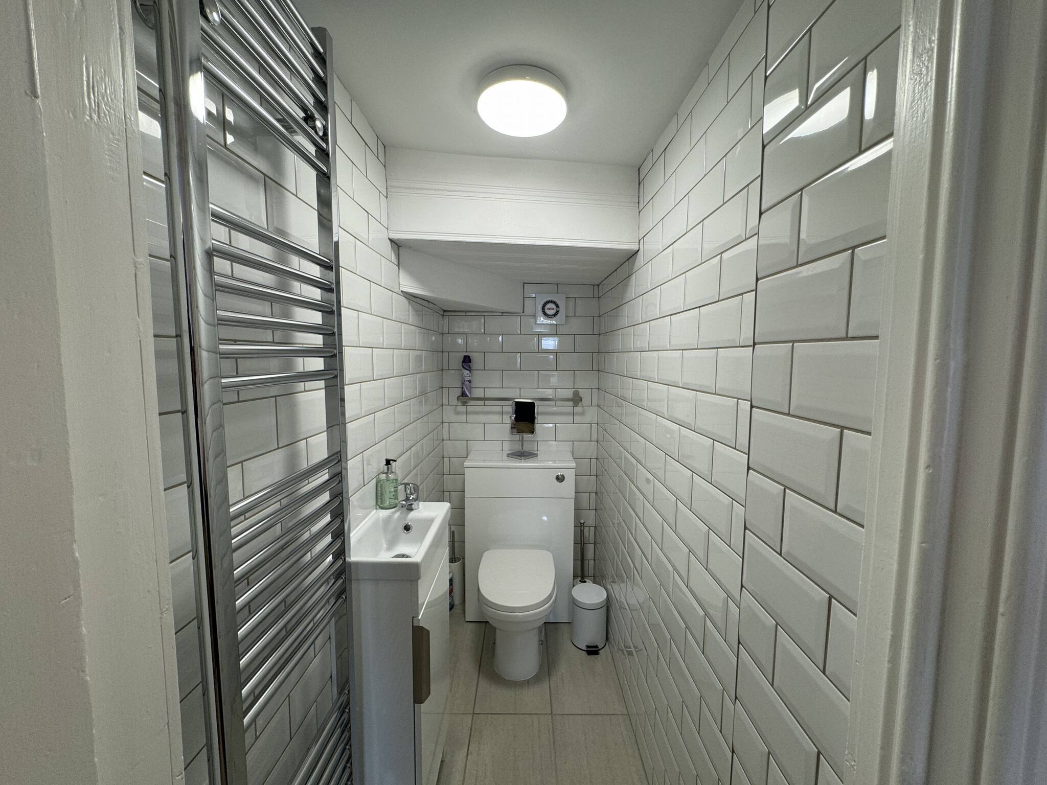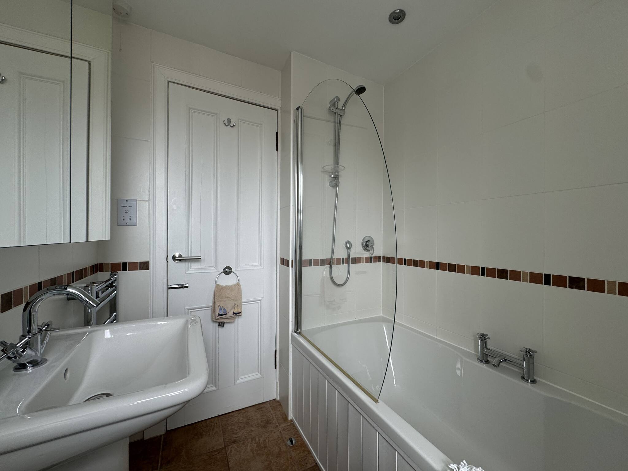 Family bathroom with bath and overhead shower