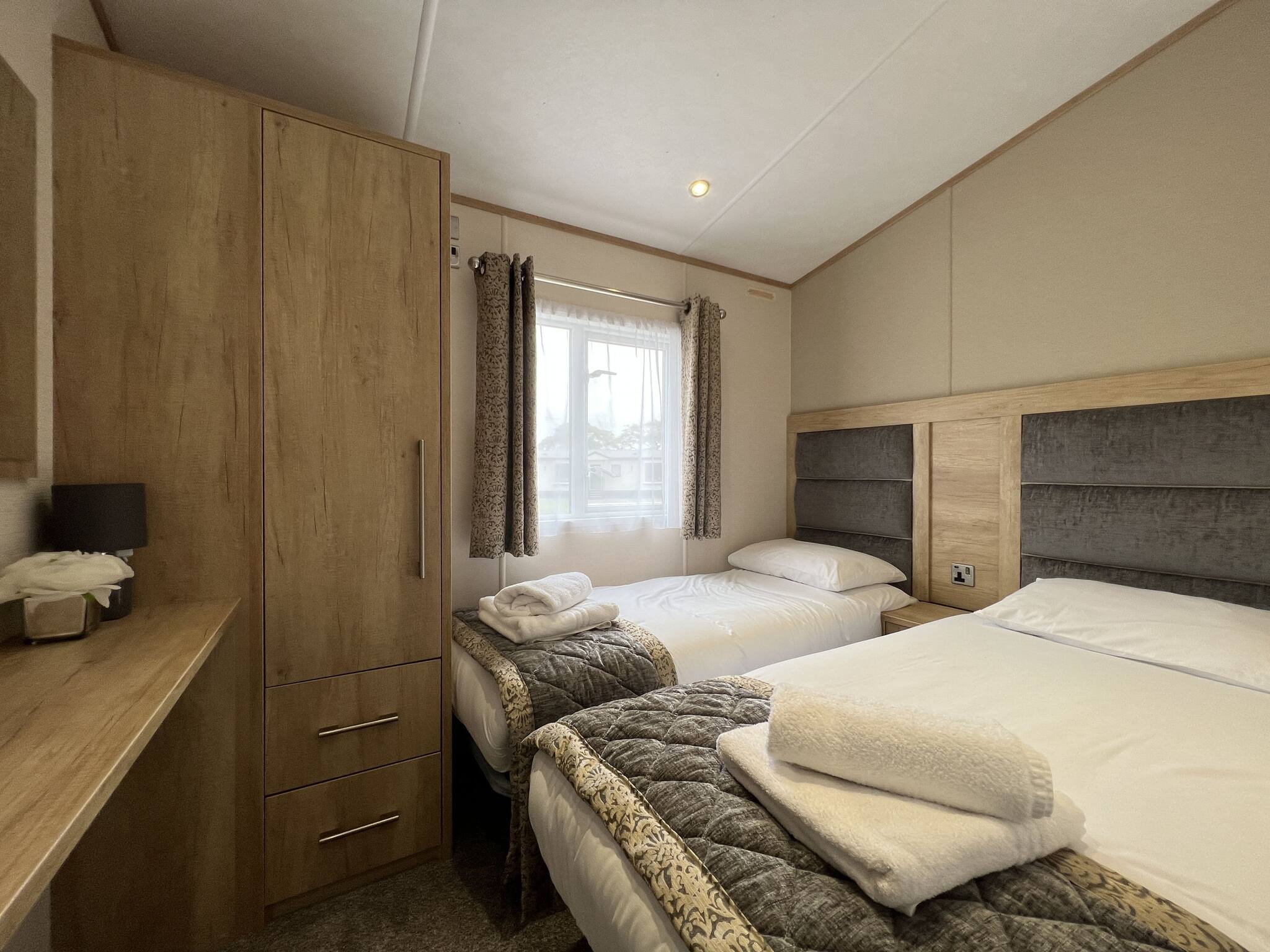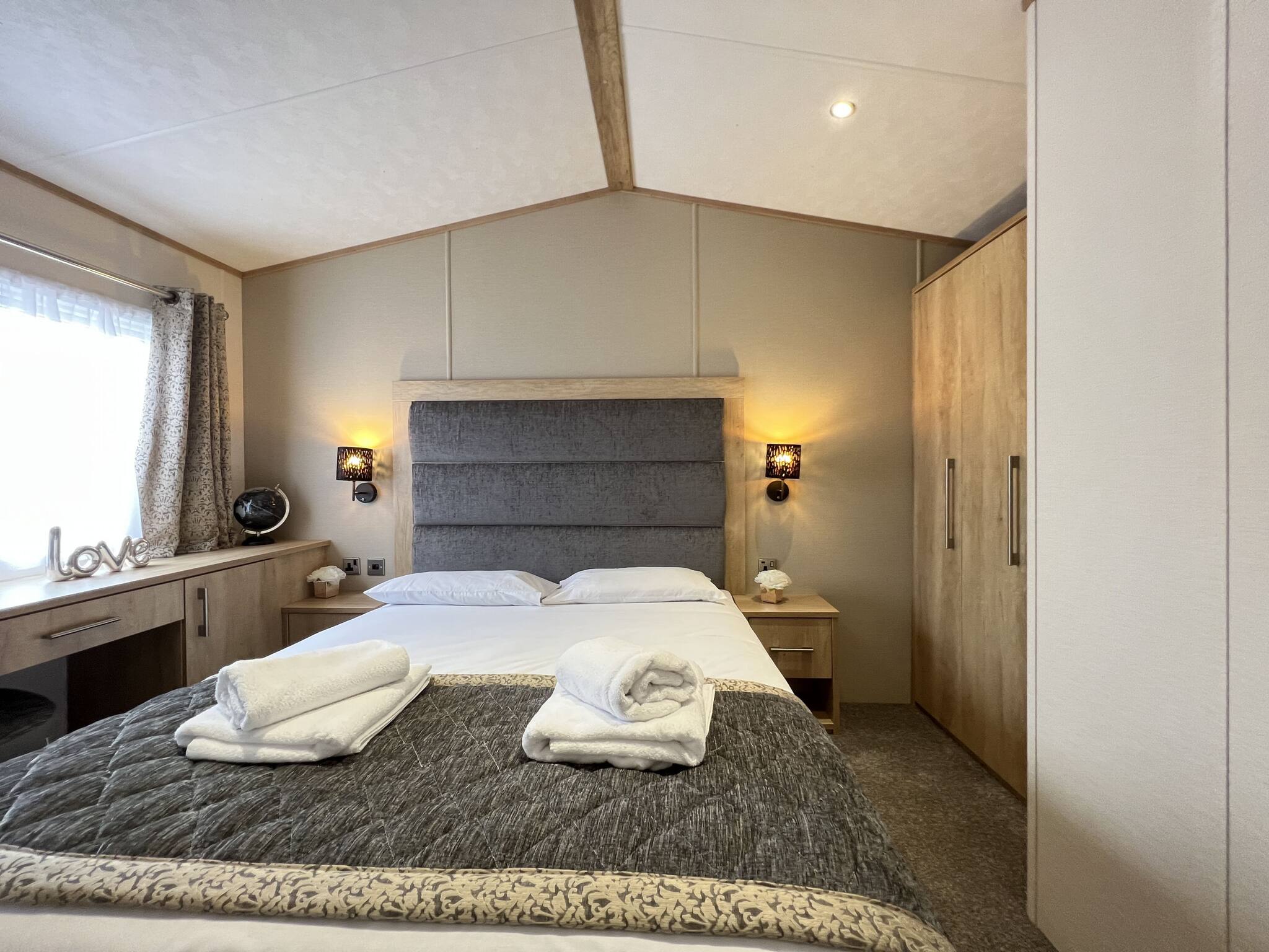 Welcome to Abingdon 31, a luxurious two-bedroom lodge offering the perfect retreat with a private hot tub and breathtaking, uninterrupted views for complete privacy. This spacious lodge features a master bedroom, a family bathroom, and a twin bedroom. Additionally, the lounge sofa can be easily folded down to accommodate children. Please request extra linen for the sofa bed if necessary (an additional fee applies ). The open-plan lounge, kitchen, and dining area are thoughtfully designed, with