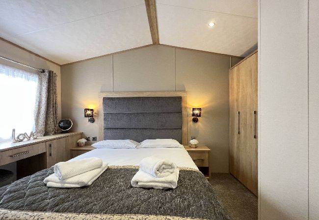This self-catering 2 Bedroom Luxury Lodge offers everything you need for a perfect stay. The open and modern kitchen/diner/lounge area features a dining table with chairs, an electric fire, and patio doors that lead out to a fully enclosed private deck. The lounge provides ample seating, and the comfortable sofa bed is available to accommodate any extra guests who may wish to join you for a night or two. Please remember to request linen and towels if you plan to use the sofa bed (fee applies).