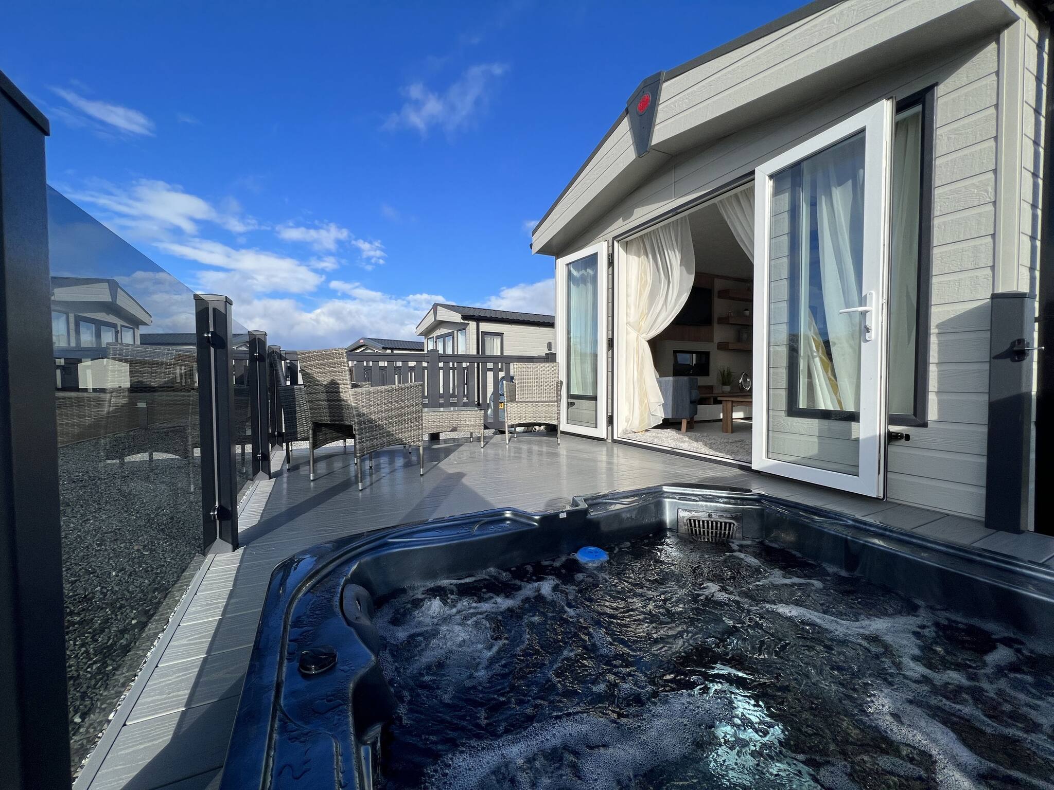 Private hot tub sunken on the enclosed decking