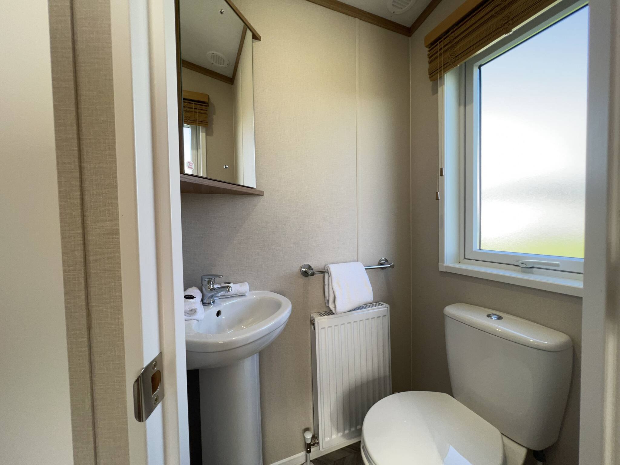 Lodge 19 can comfortably sleep up to six guests. The master bedroom (kingsize bed) includes an en-suite bathroom with a walk-in shower. The second bedroom comprises two single beds that can be arranged into a double bed. There is also a three-piece family bathroom with an overhead shower accessible from the hallway.
