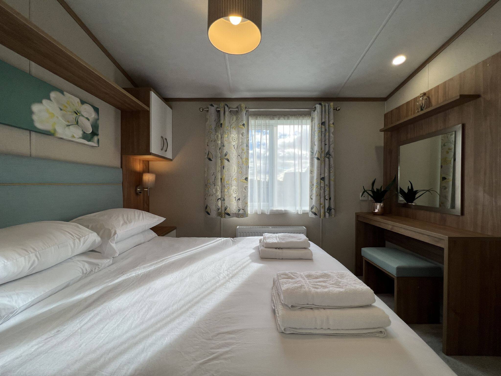 Welcome to Abingdon 31, a luxurious two-bedroom lodge offering the perfect retreat with a private hot tub and breathtaking, uninterrupted views for complete privacy. This spacious lodge features a master bedroom, a family bathroom, and a twin bedroom. Additionally, the lounge sofa can be easily folded down to accommodate children. Please request extra linen for the sofa bed if necessary (an additional fee applies ). The open-plan lounge, kitchen, and dining area are thoughtfully designed, with