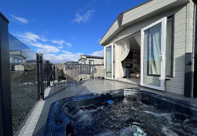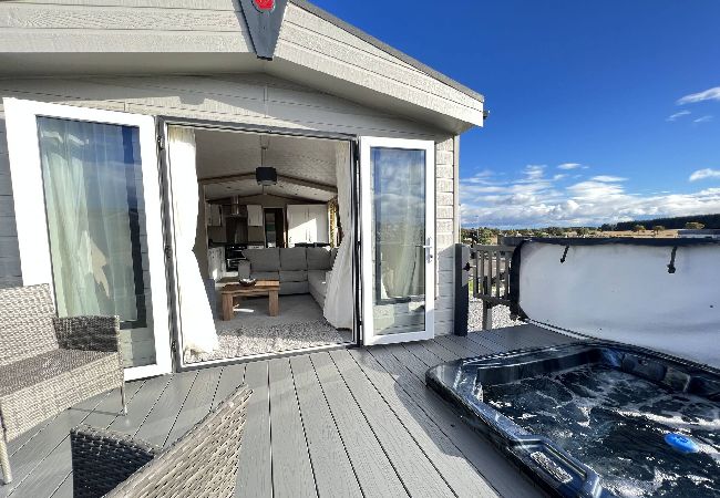 Welcome to Abingdon 31, a luxurious two-bedroom lodge offering a tranquil getaway with a sunken hot tub and breathtaking, uninterrupted views for complete privacy. This spacious lodge features a master bedroom, a family bathroom, and a twin bedroom. Additionally, the lounge sofa can be easily folded down, making it suitable for children. The open-plan lounge, kitchen, and dining area create a welcoming space, with doors leading to an enclosed decking area equipped with garden furniture and a sunken outdoor hot tub. Throughout the lodge, you'll find high-quality fixtures and fittings, along with the modern and contemporary decor, ensuring a stylish and comfortable ambience. Whether you're a family, a couple, or a group of golfers, this lodge is the ideal choice due to its close proximity to St Andrews.
