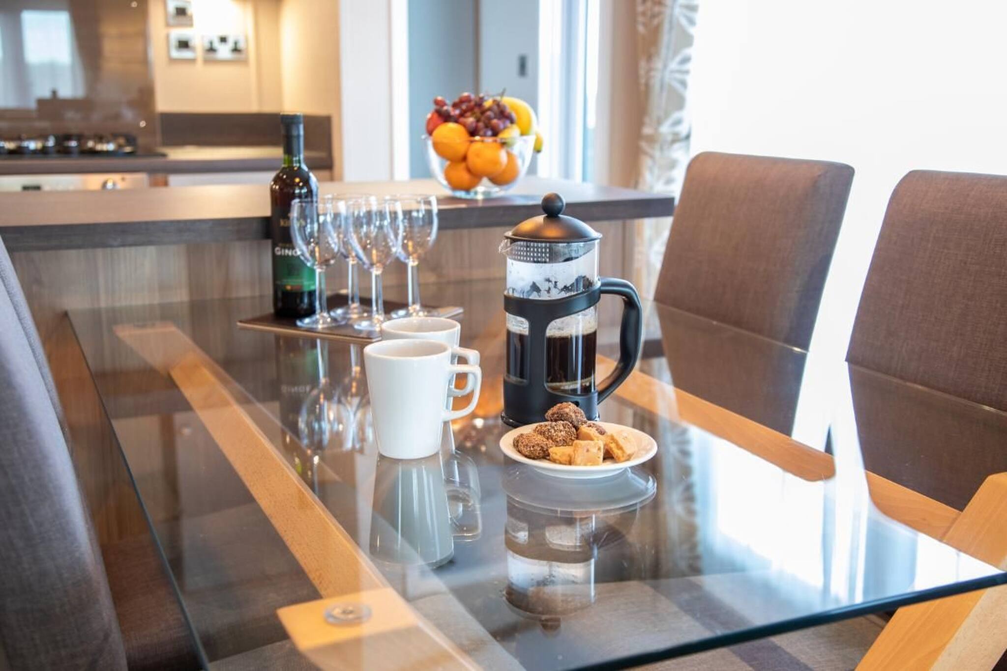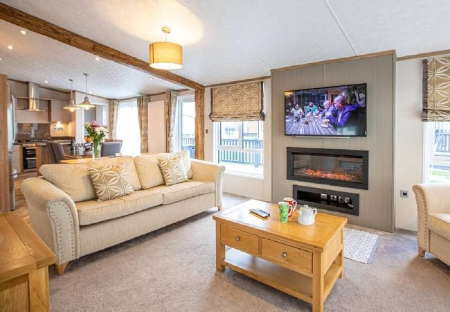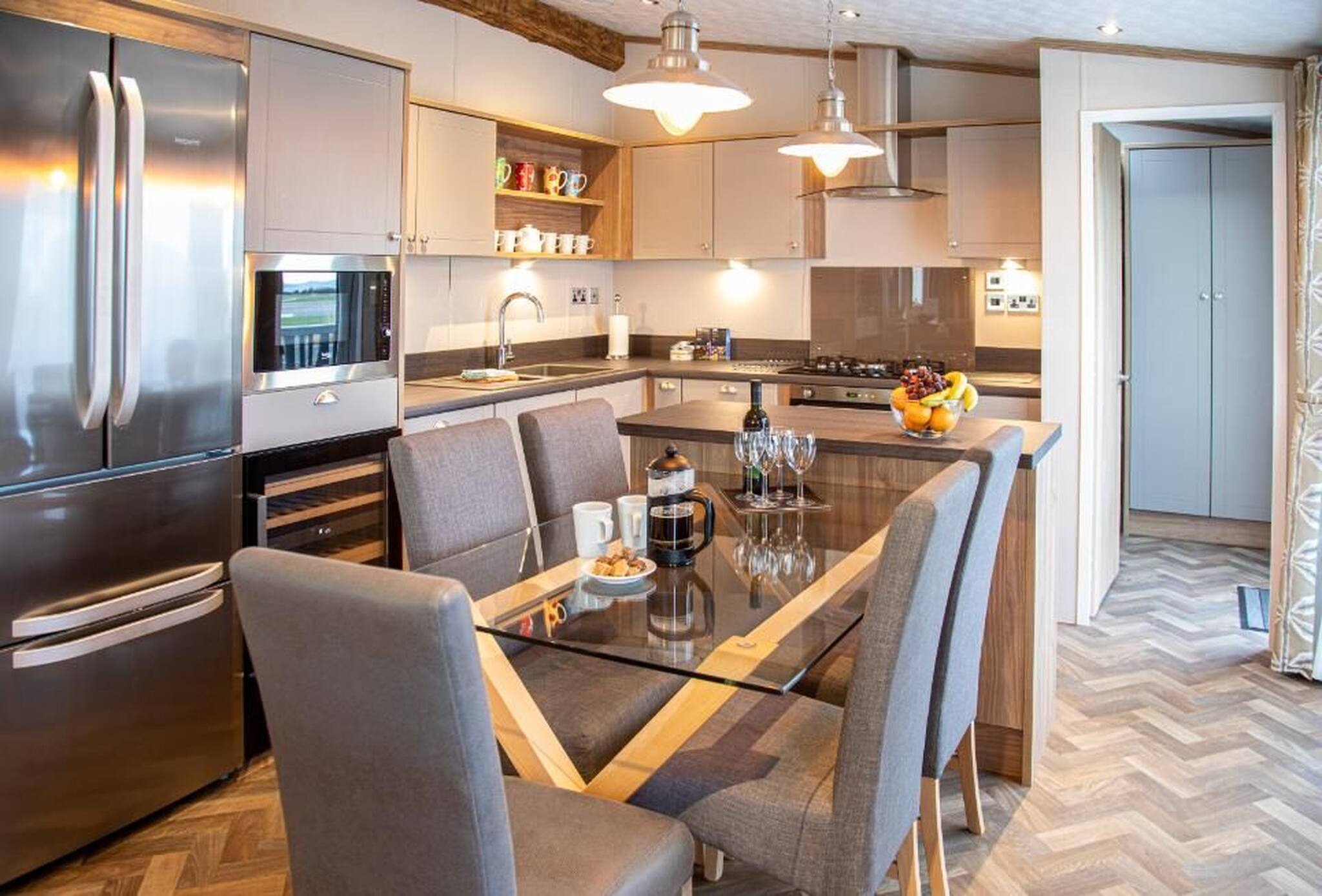 As a self-catering lodge, you'll find everything you need for a perfect stay. The kitchen is very modern and includes an island as well as a freestanding American-style fridge freezer, the perfect home-from-home!
