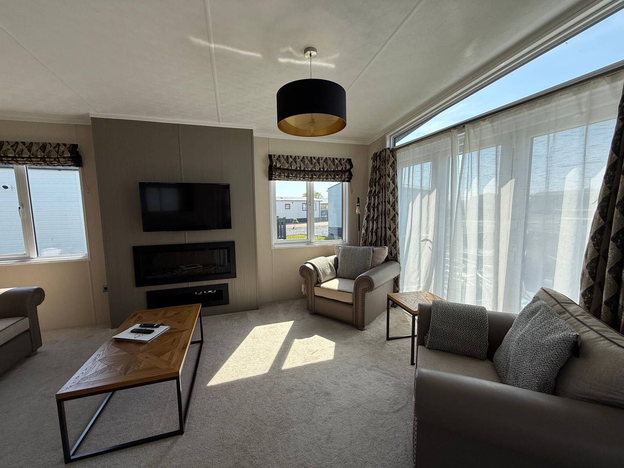 Step into your spacious, modern lodge where contemporary interiors, plush furnishings, and an open-plan layout welcome you in. Whether you're preparing meals in the fully equipped kitchen or unwinding in the cosy lounge after a day of exploring the coastline or golfing, Liberté Lodge offers a peaceful haven to recharge and reconnect.