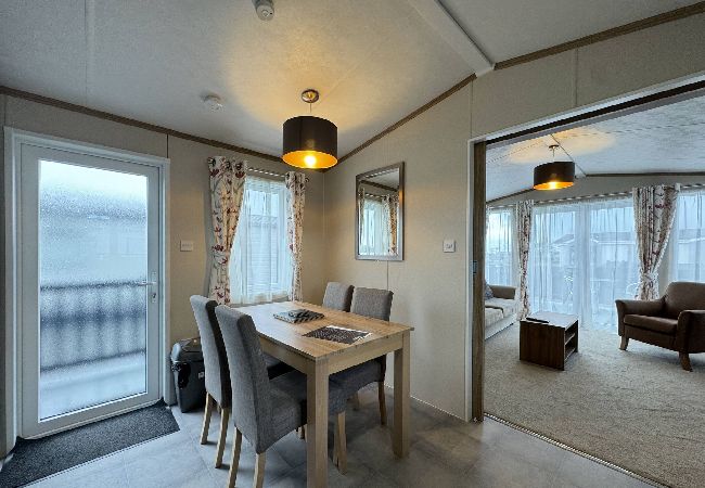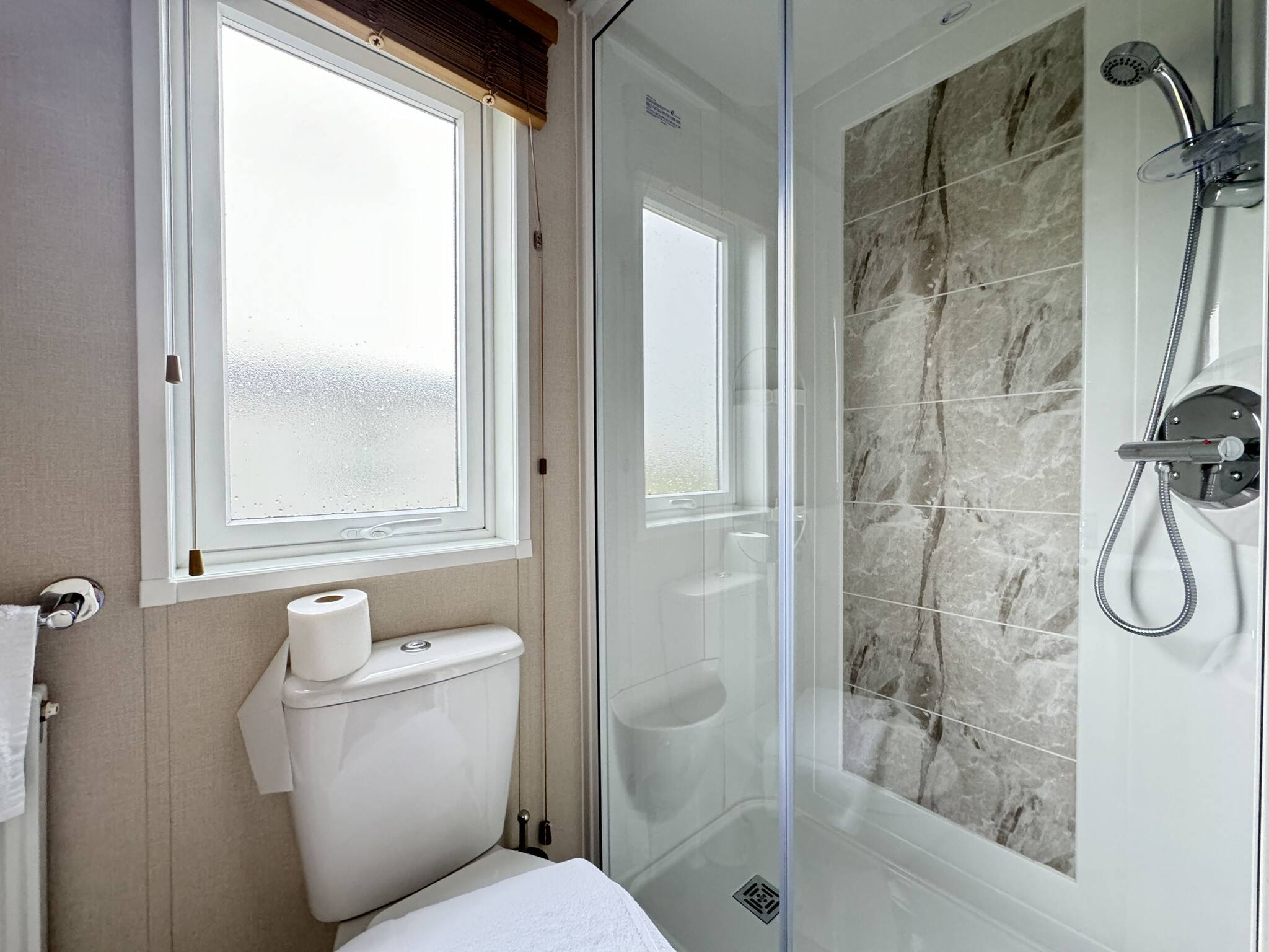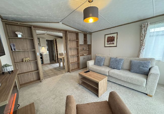 This self-catering 2 Bedroom Luxury Lodge offers everything you need for a perfect stay. The open and modern kitchen/diner/lounge area features a dining table with chairs, an electric fire, and patio doors that lead out to a fully enclosed private deck. The lounge provides ample seating, and the comfortable sofa bed is available to accommodate any extra guests who may wish to join you for a night or two. Please remember to request linen and towels if you plan to use the sofa bed (fee applies).