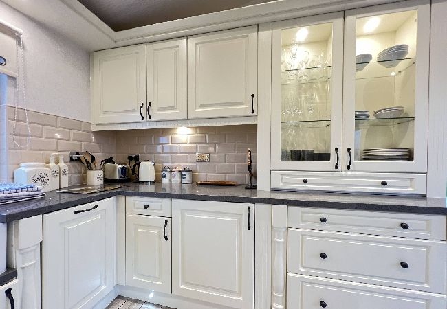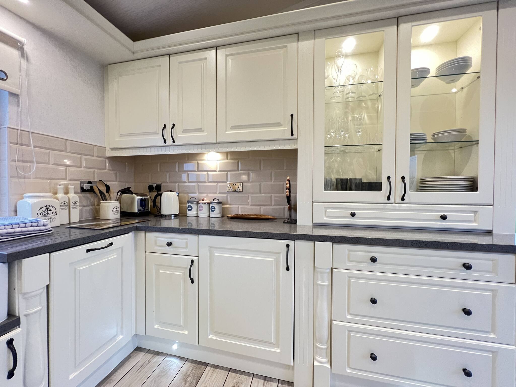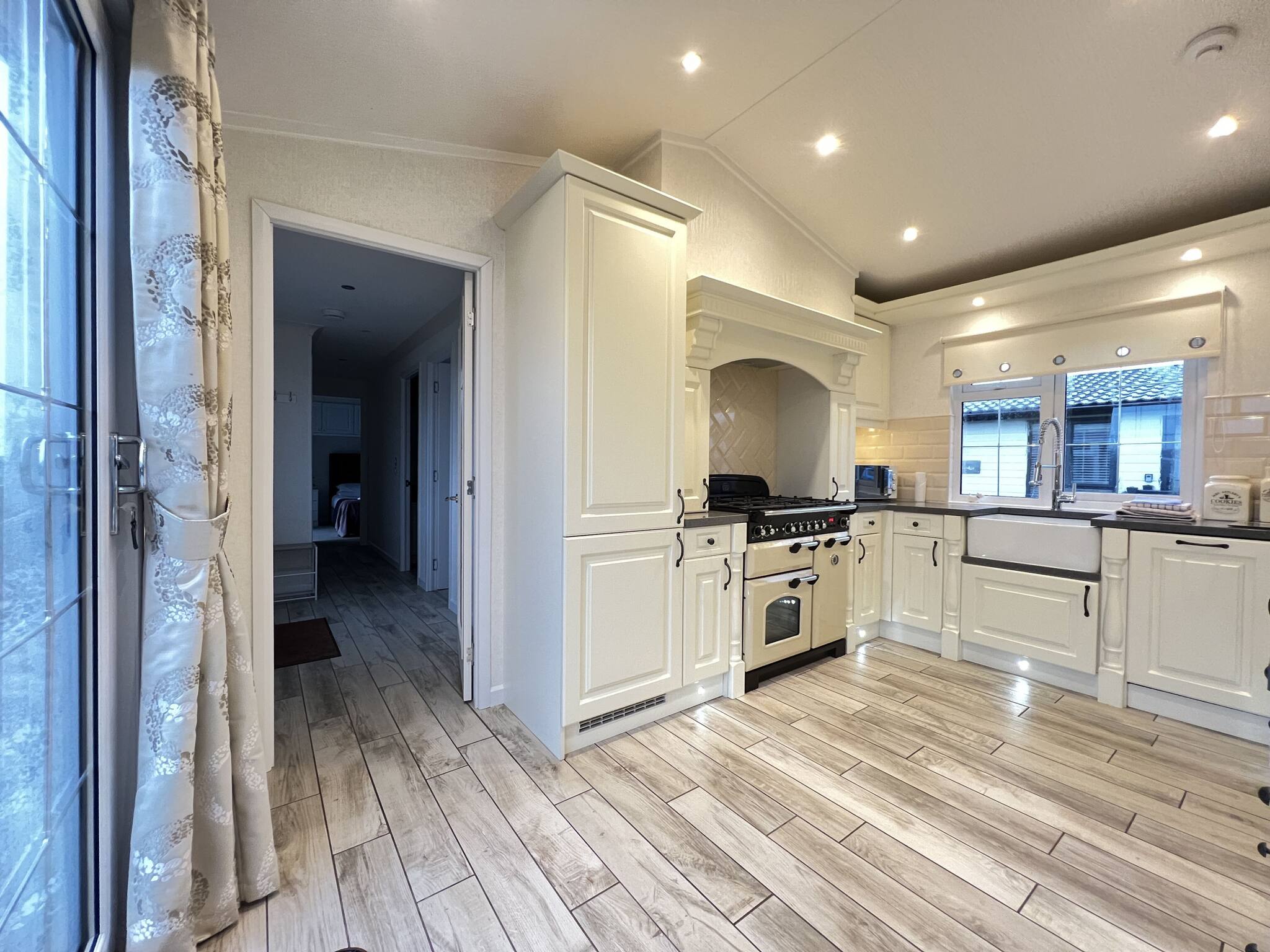 As a self-catering lodge, you'll find everything you need for a perfect stay. The kitchen is very modern and includes an island as well as a freestanding American-style fridge freezer, the perfect home-from-home!