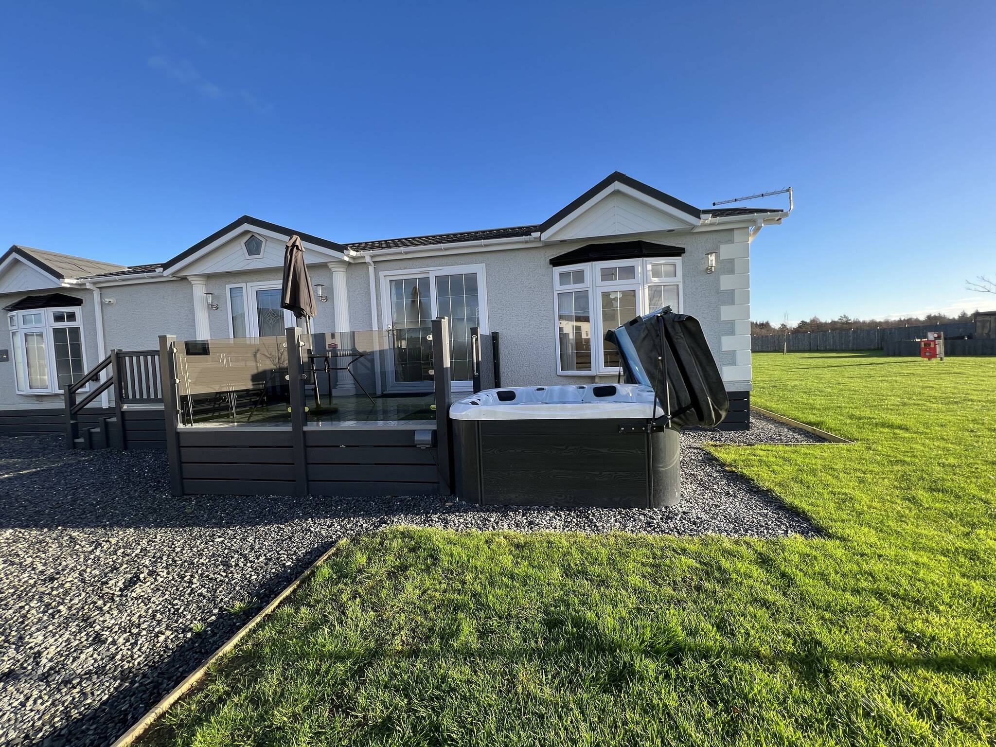 To ensure your stay is enjoyable, linen and towels are provided. For added relaxation, there is a private hot tub located beside the lodge. The lodge also features an outdoor, non-enclosed decking area with outside furniture, allowing you to appreciate the surroundings fully.