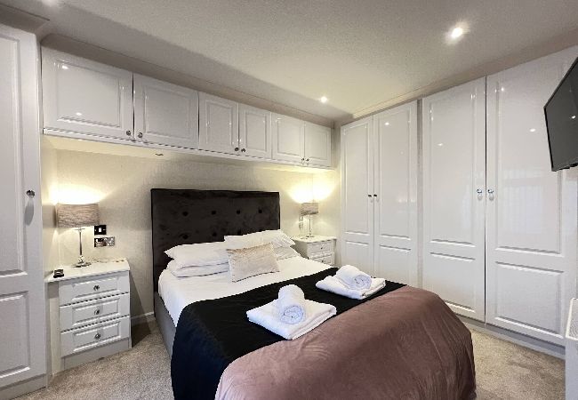This lodge offers two bedrooms, comfortably accommodating a total of four guests. Both bedrooms feature double beds and wardrobe storage. The master bedroom includes a delightful en-suite with a shower, and in addition to the master en-suite, there is a family bathroom with a beautiful freestanding bath and a telephone-style shower.