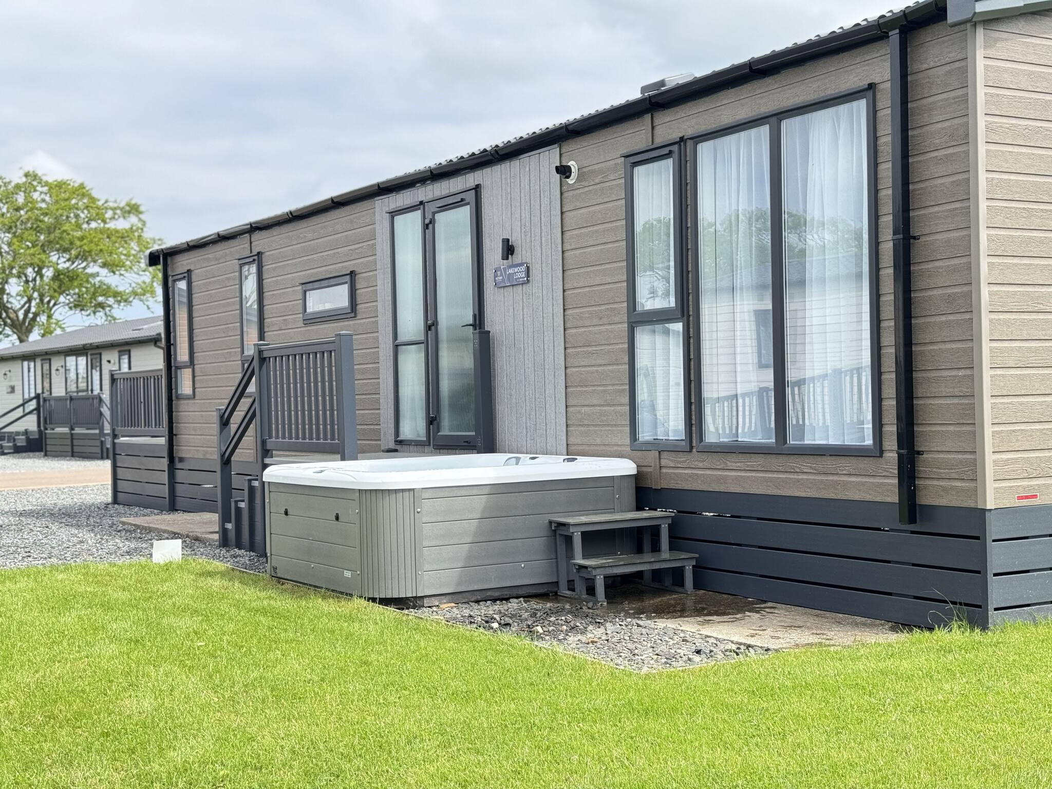 Private hot tub sunken on the enclosed decking