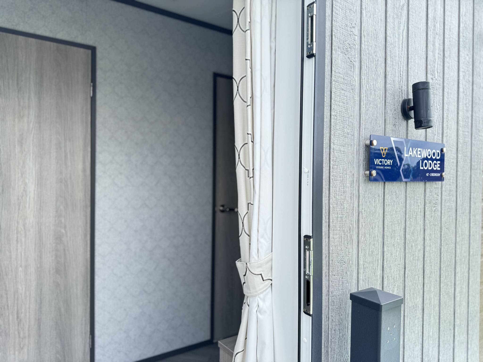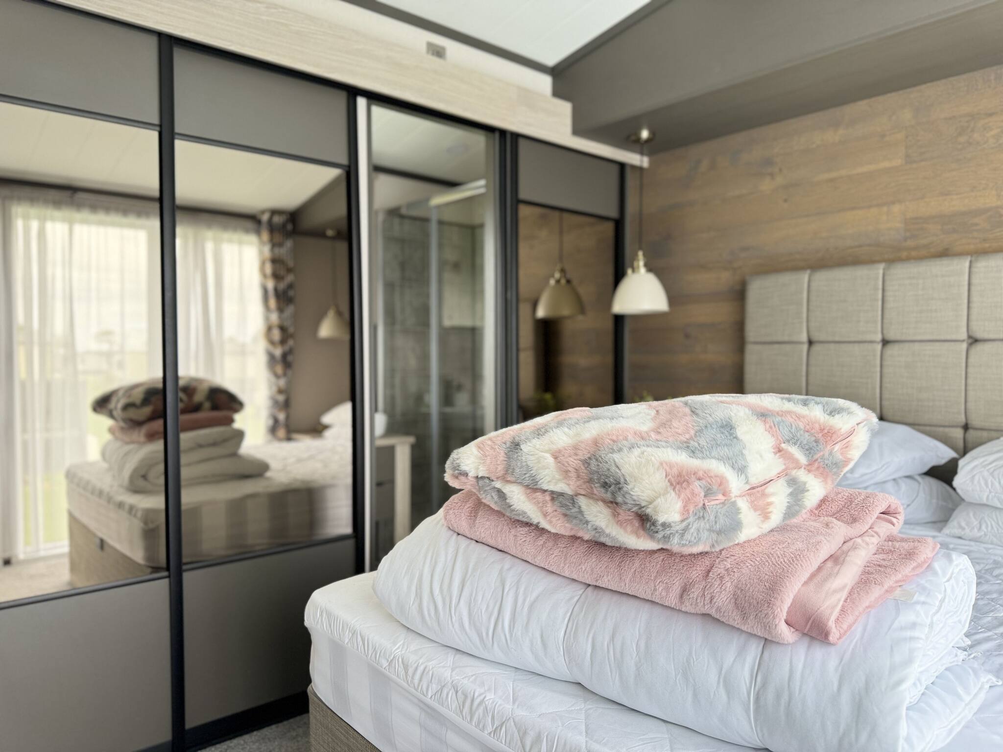 Lodge 19 can comfortably sleep up to six guests. The master bedroom (kingsize bed) includes an en-suite bathroom with a walk-in shower. The second bedroom comprises two single beds that can be arranged into a double bed. There is also a three-piece family bathroom with an overhead shower accessible from the hallway.