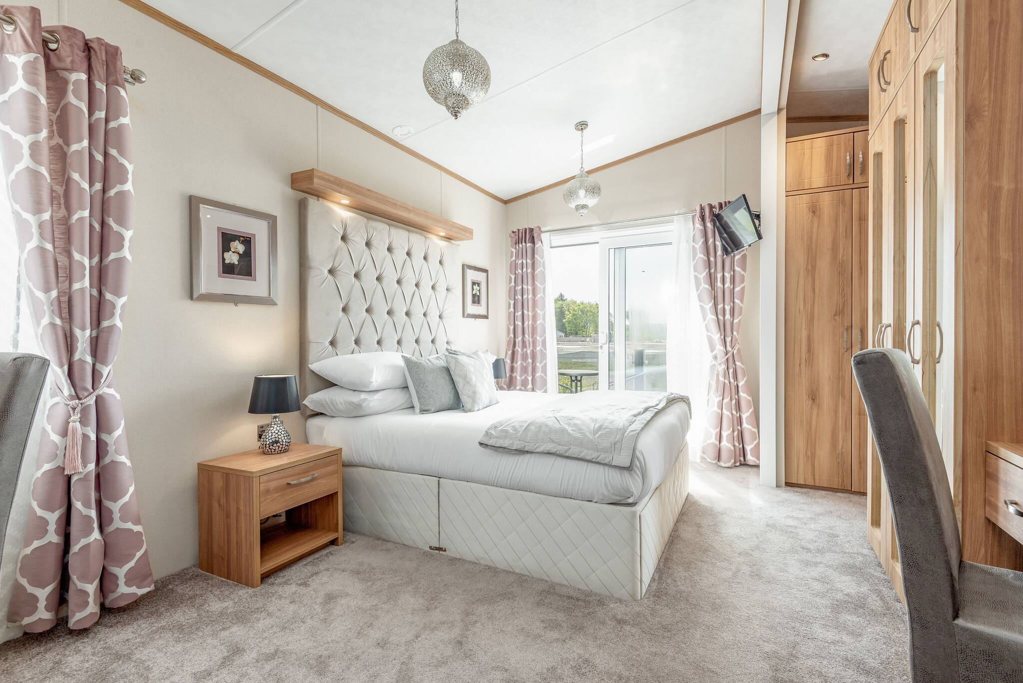 Lodge 19 can comfortably sleep up to six guests. The master bedroom (kingsize bed) includes an en-suite bathroom with a walk-in shower. The second bedroom comprises two single beds that can be arranged into a double bed. There is also a three-piece family bathroom with an overhead shower accessible from the hallway.