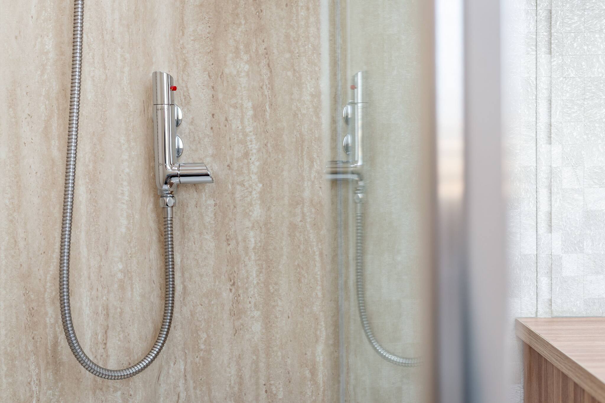Family bathroom with overhead shower