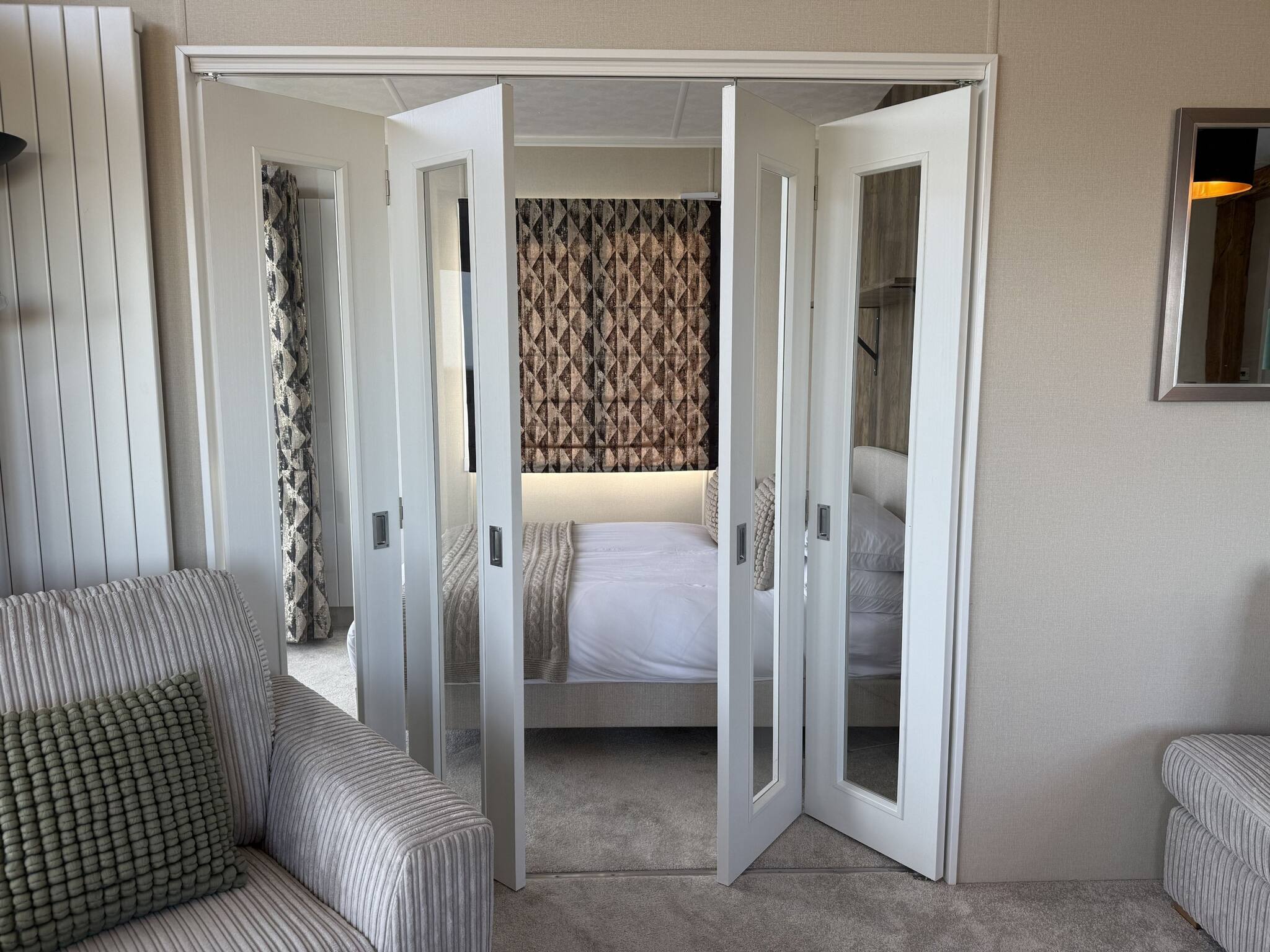 This lodge has two bedrooms and a snug with a double sofa bed and can comfortably sleep up to six people.