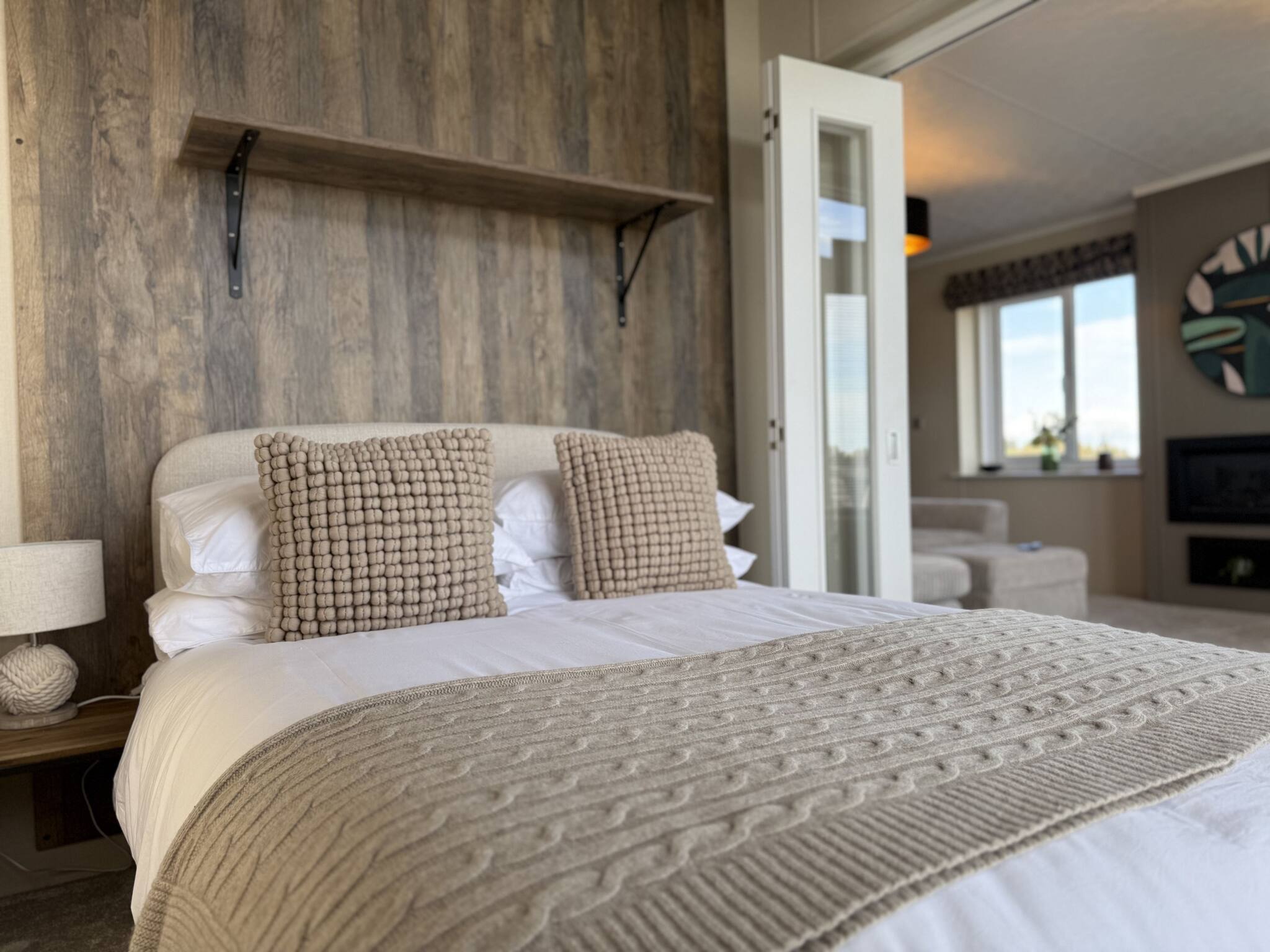 Lodge 92 comfortably accommodates up to six guests. The master bedroom boasts a king-size bed and an en-suite bathroom with a walk-in shower. The second bedroom features two single beds, which can be arranged into a double bed per your preference. Furthermore, a versatile snug room is adjacent to the lounge, furnished with a double sofa bed for additional sleeping request extra linen for the sofa bed if necessary (an additional fee applies ). A three-piece family bathroom, with an overhead shower, is easily accessible from the hallway.