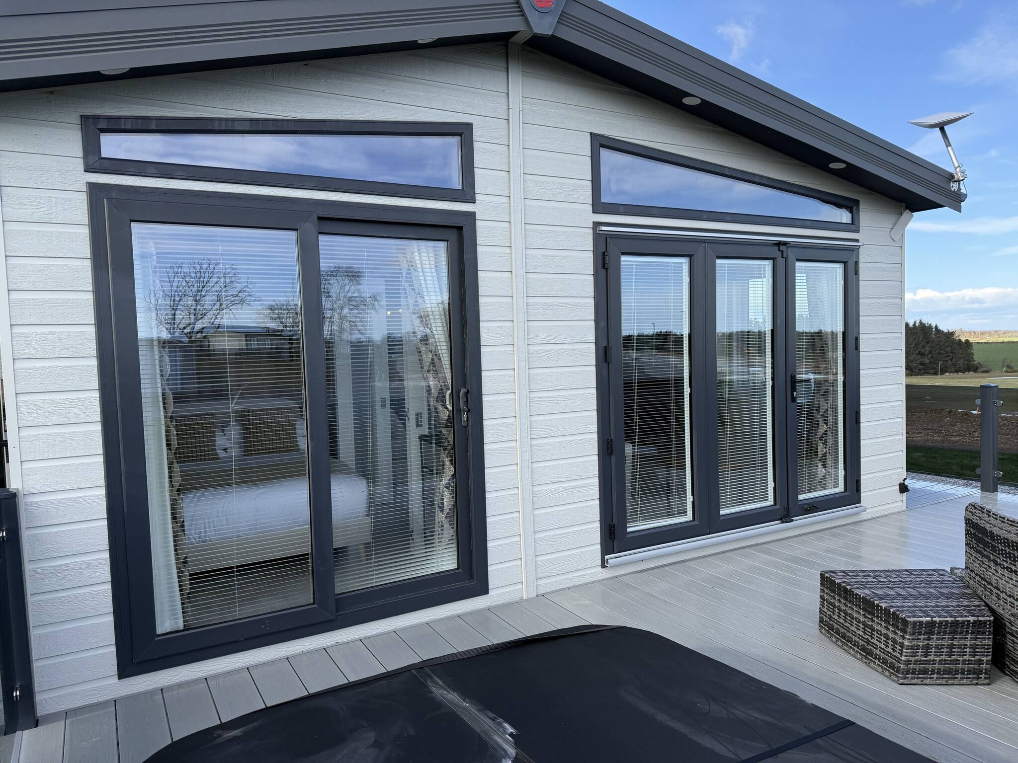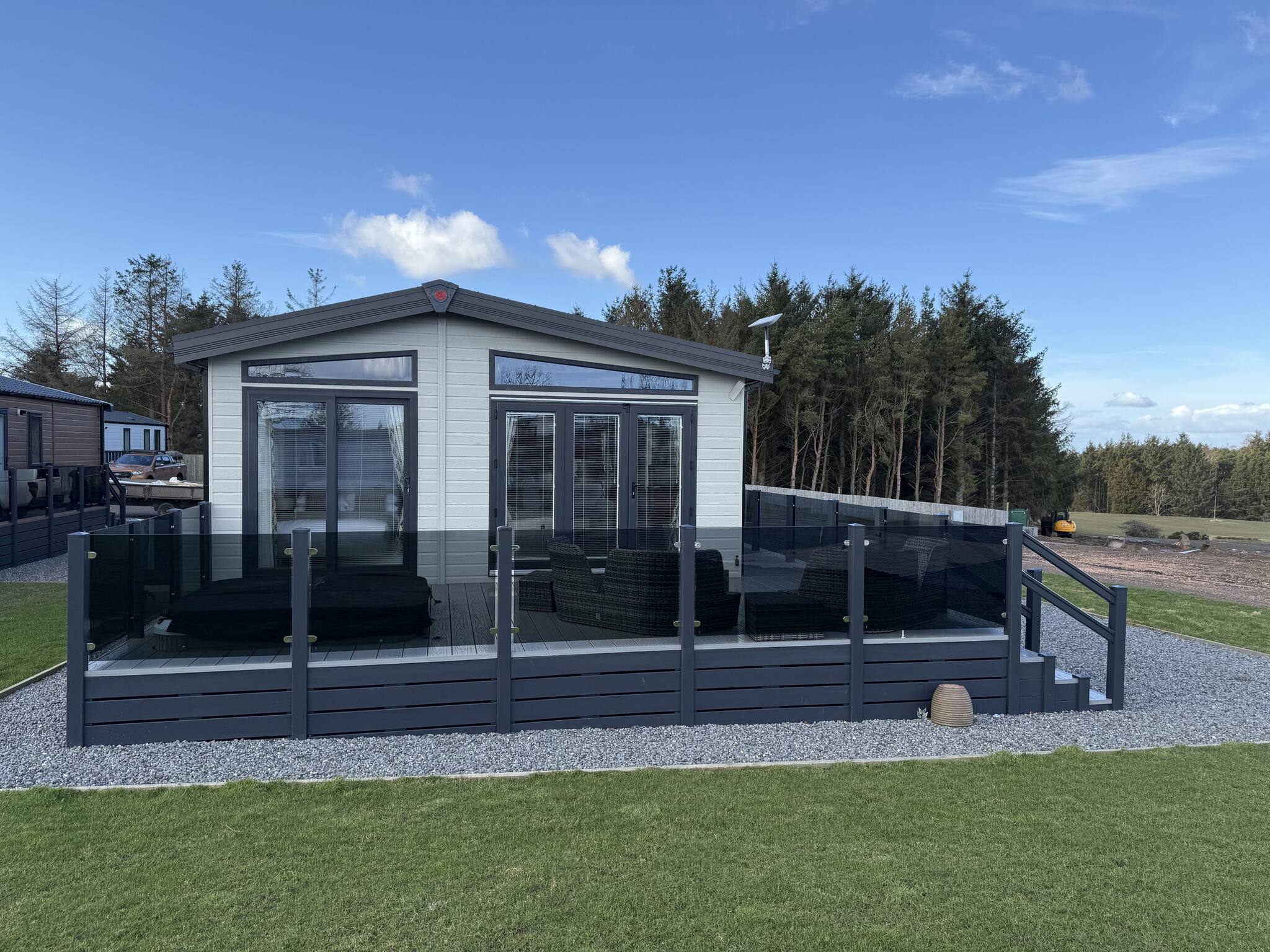 The lodge also offers an enclosed decking area, providing a private and secure outdoor space for relaxation and enjoyment.