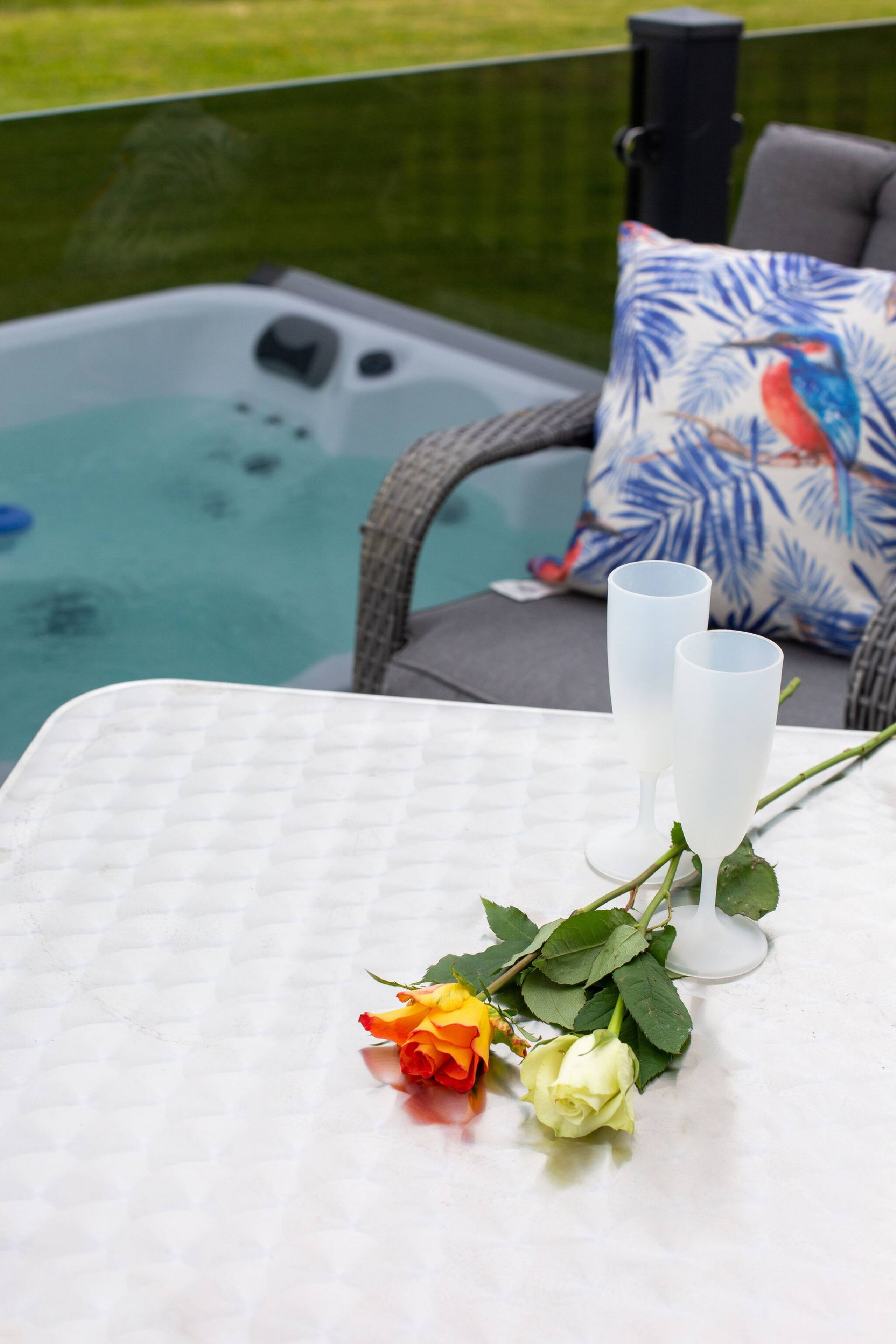 - Glass tumblers and glass bottles are not permitted inside the hot tub - please use plastic