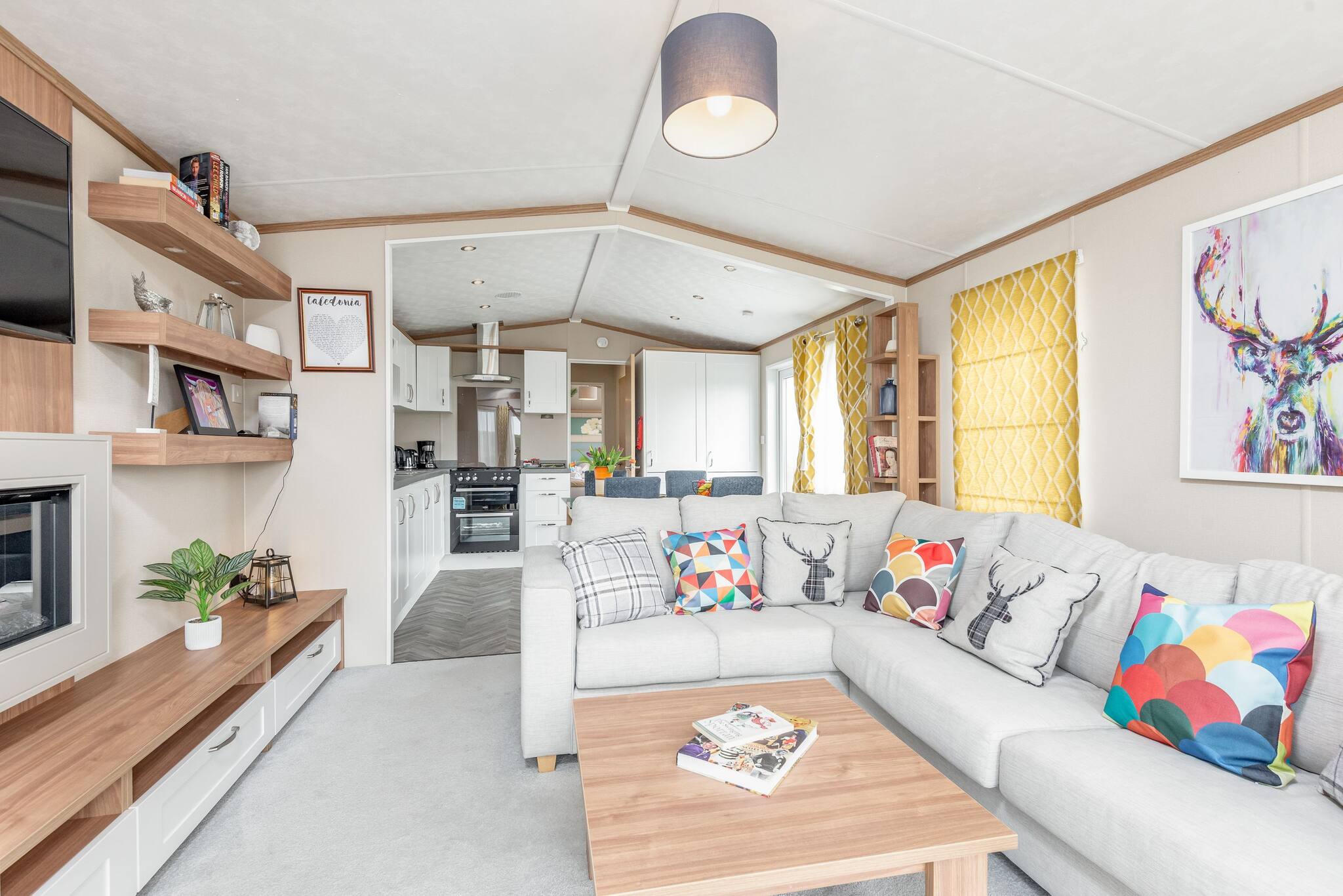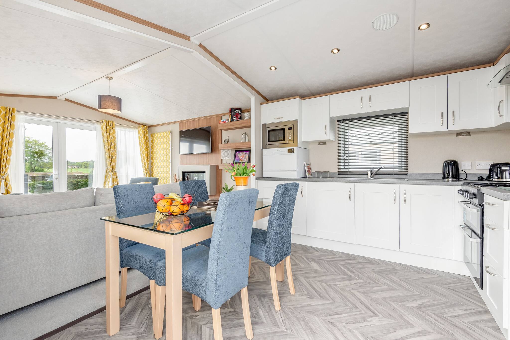 As a self-catering lodge, you'll find everything you need for a perfect stay. The kitchen is very modern and includes an island as well as a freestanding American-style fridge freezer, the perfect home-from-home!