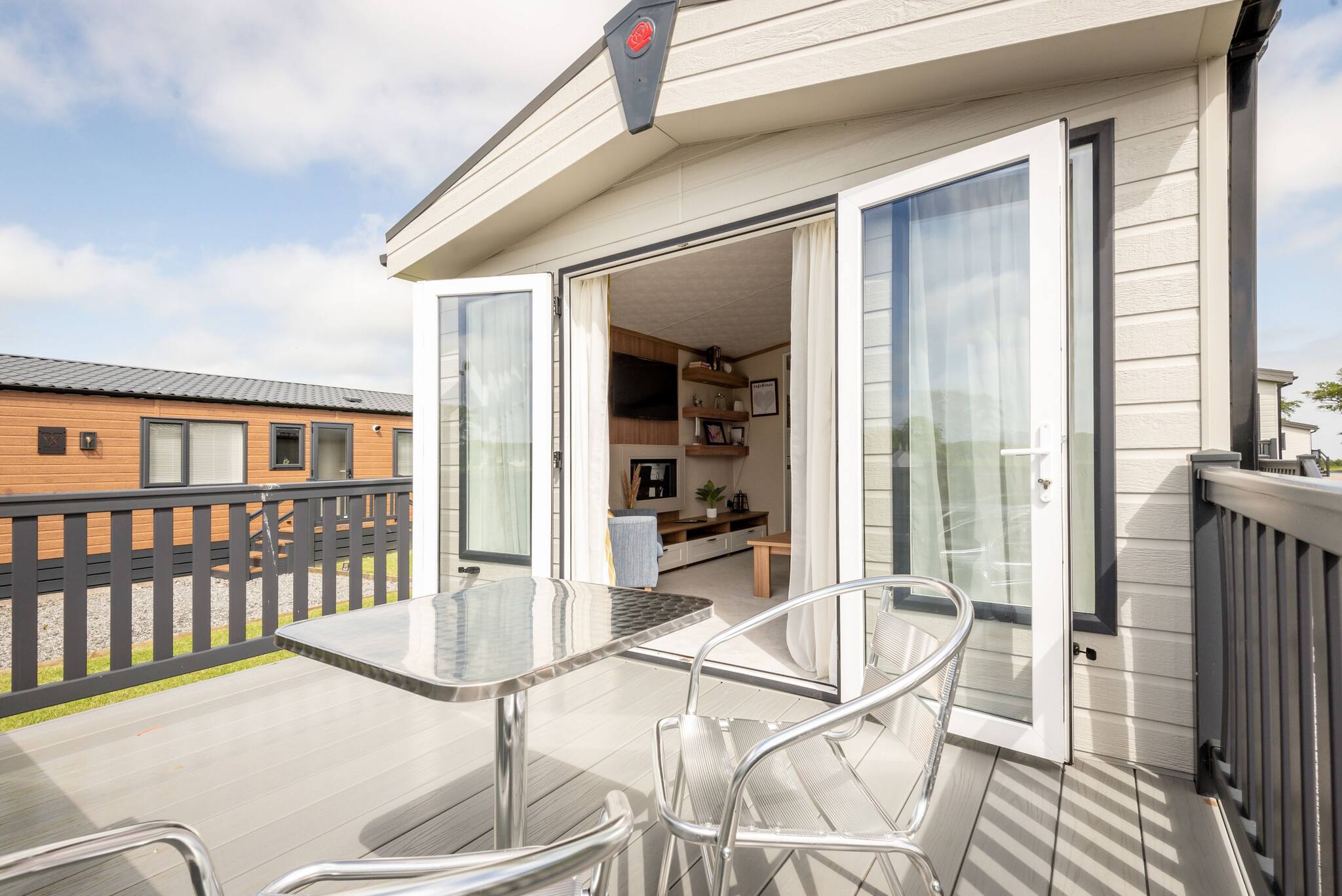 Relish the privacy of our lodge's private and enclosed decking area, complete with outdoor furniture, where you can unwind and soak up the tranquil surroundings. The resort's beautifully landscaped gardens also provide a peaceful oasis for leisurely strolls and moments of serenity.
