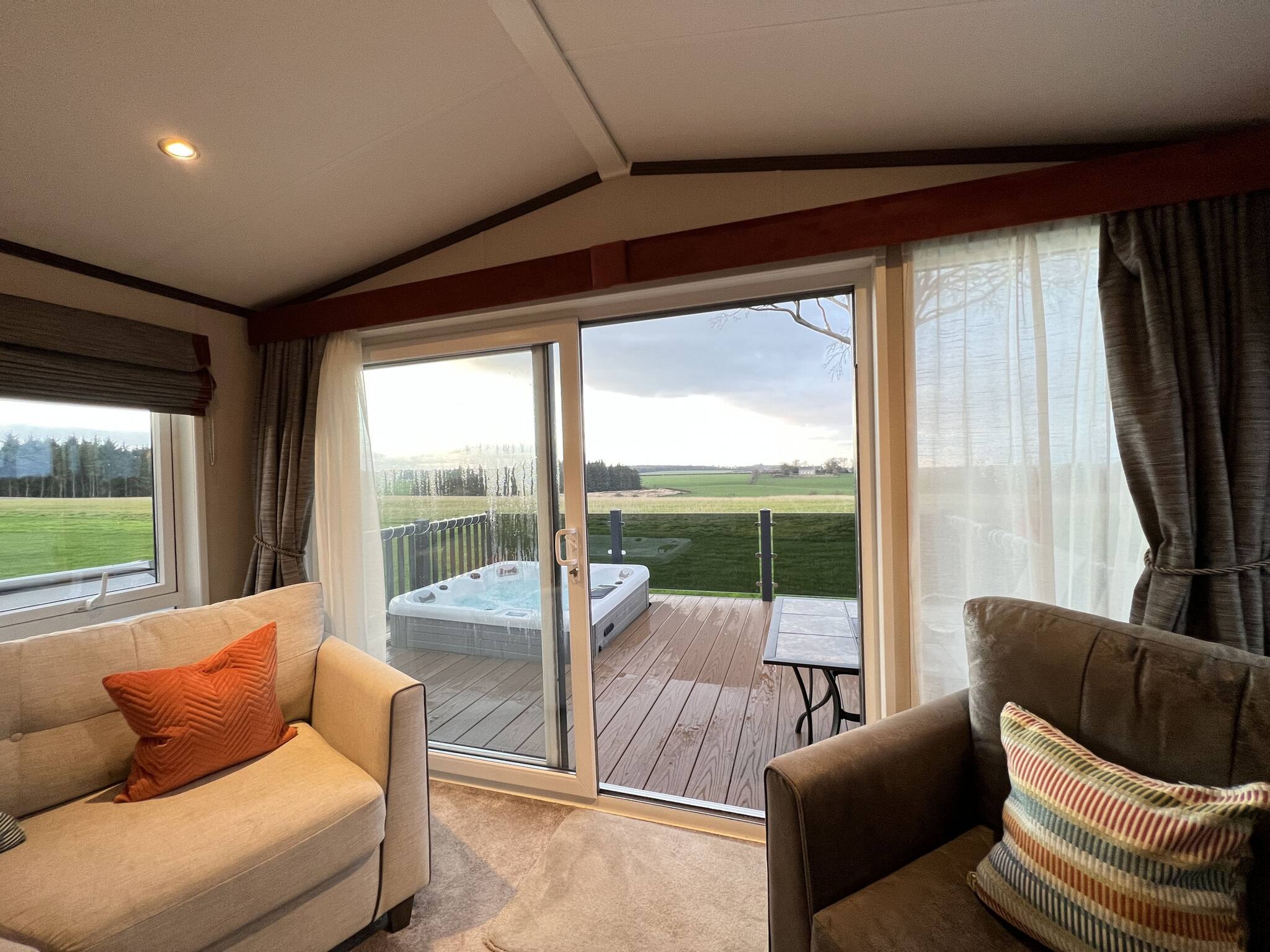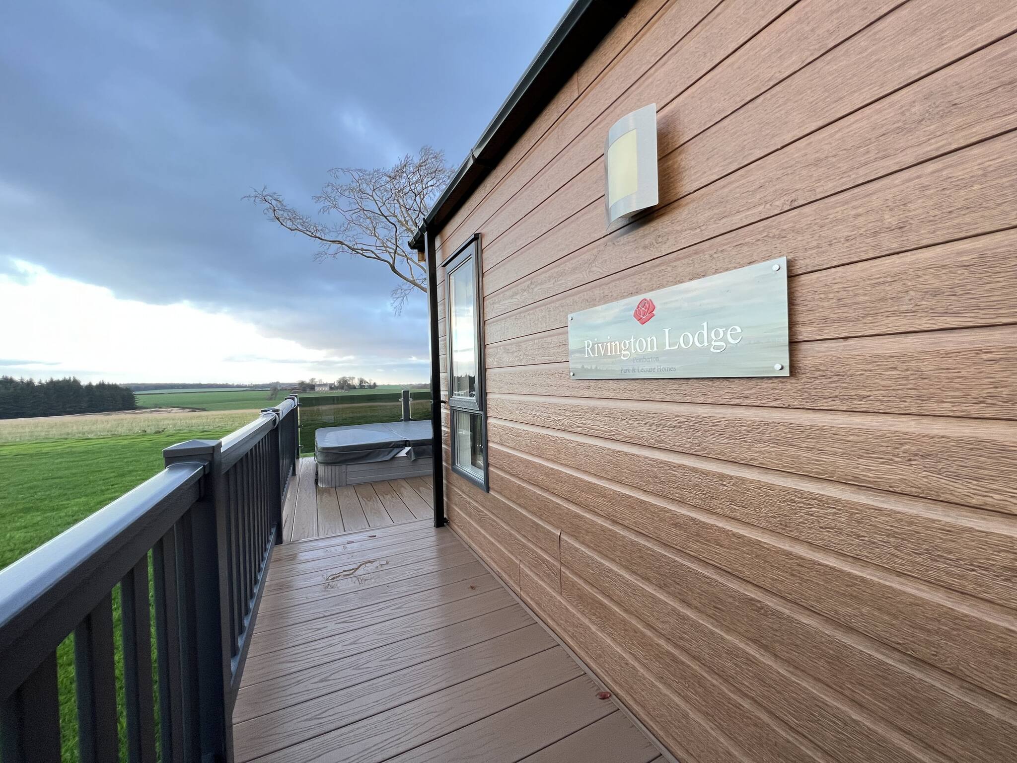 One of the highlights of this lodge is the private hot tub, providing panoramic views across the countryside and the river. Indulge in relaxation and take in the beauty of your surroundings.