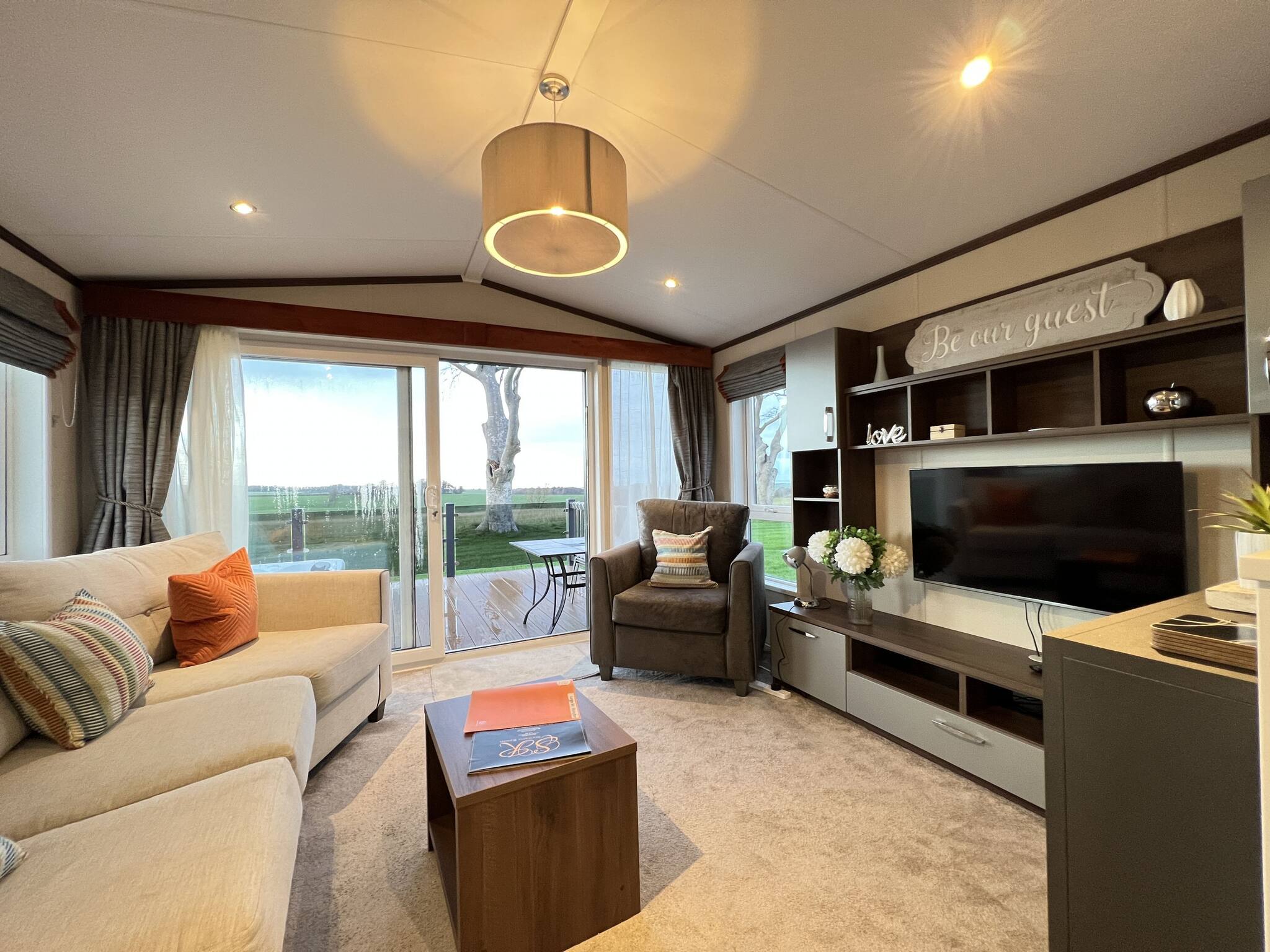 Welcome to Abingdon 31, a luxurious two-bedroom lodge offering the perfect retreat with a private hot tub and breathtaking, uninterrupted views for complete privacy. This spacious lodge features a master bedroom, a family bathroom, and a twin bedroom. Additionally, the lounge sofa can be easily folded down to accommodate children. Please request extra linen for the sofa bed if necessary (an additional fee applies ). The open-plan lounge, kitchen, and dining area are thoughtfully designed, with