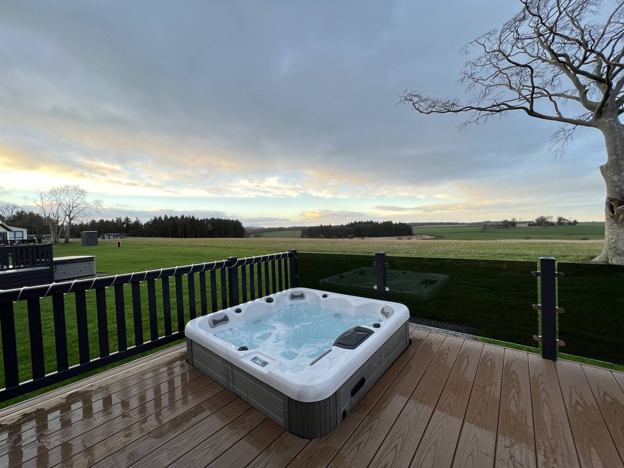 Private hot tub sunken on the enclosed decking