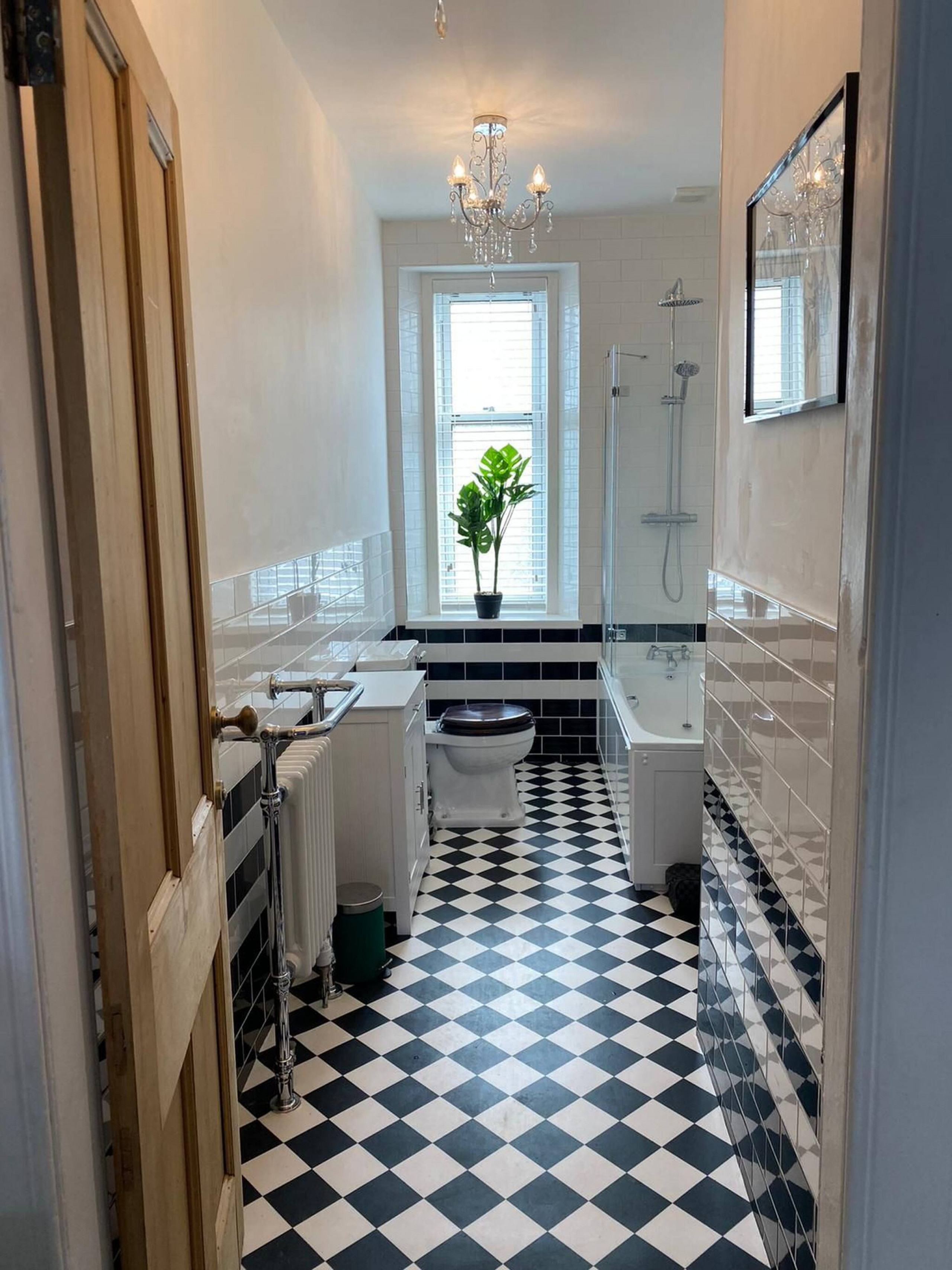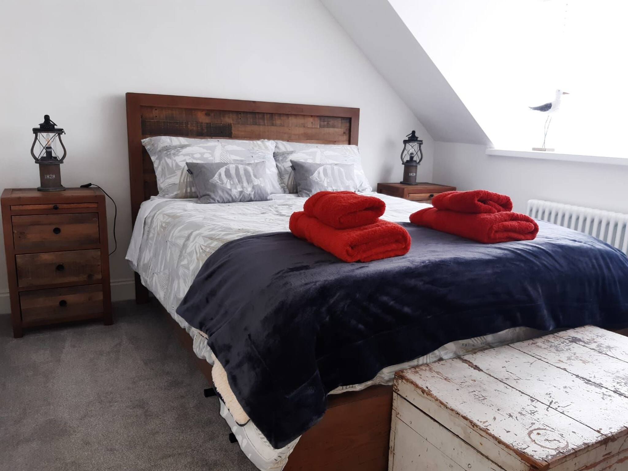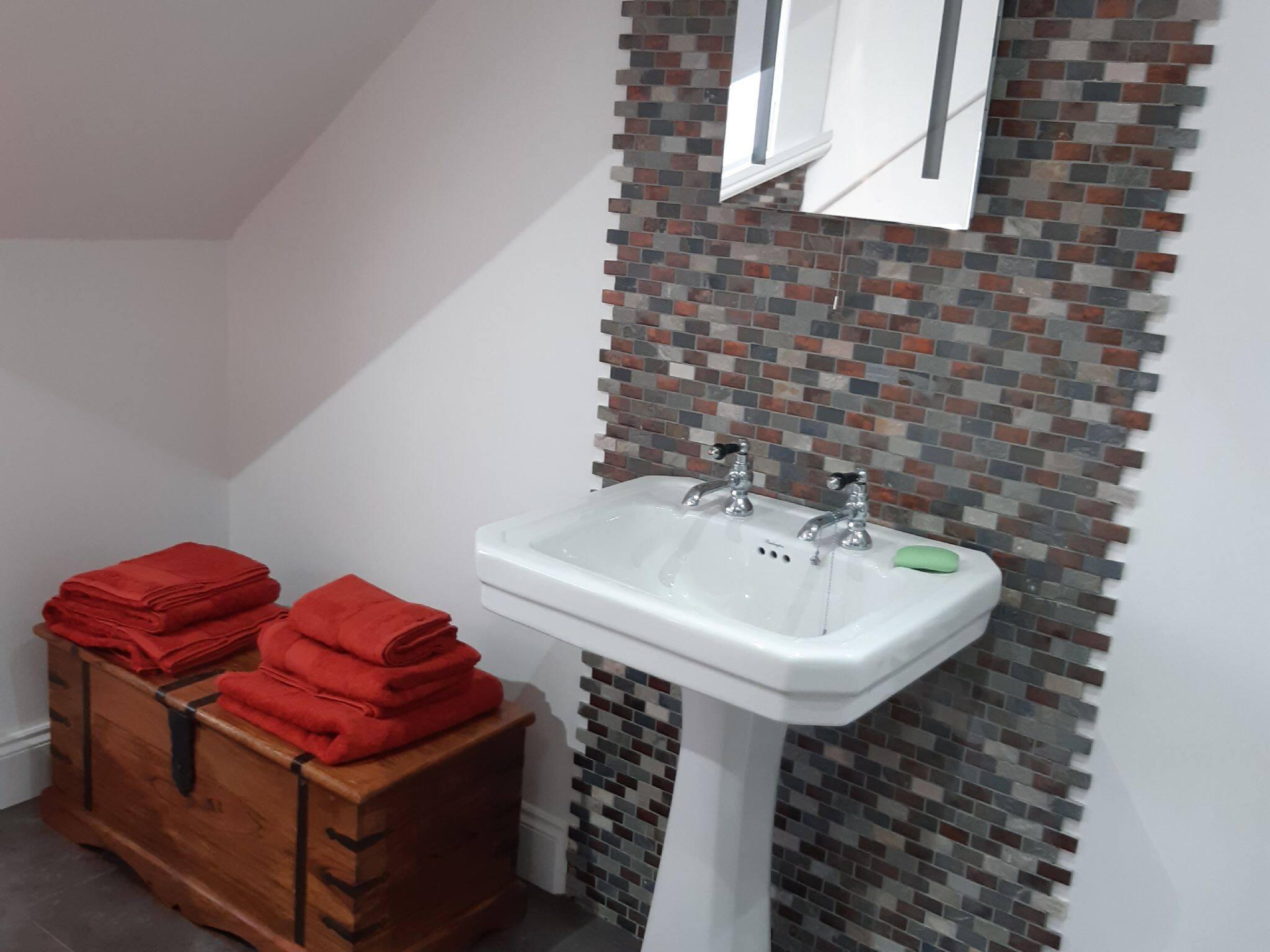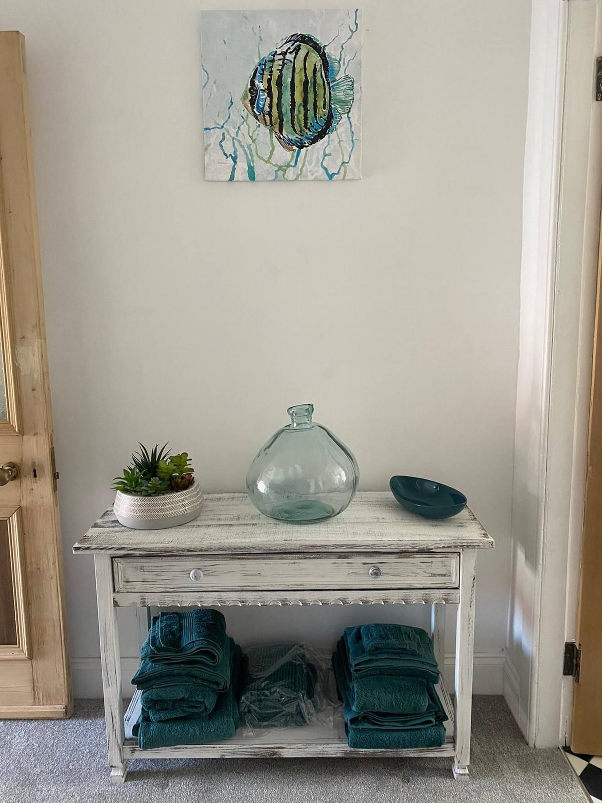 On the upper floor there are a further two double bedrooms and a second spacious bathroom where a beautiful freestanding copper bath is the star of the show! The front bedroom and bathroom both enjoy a sea view.