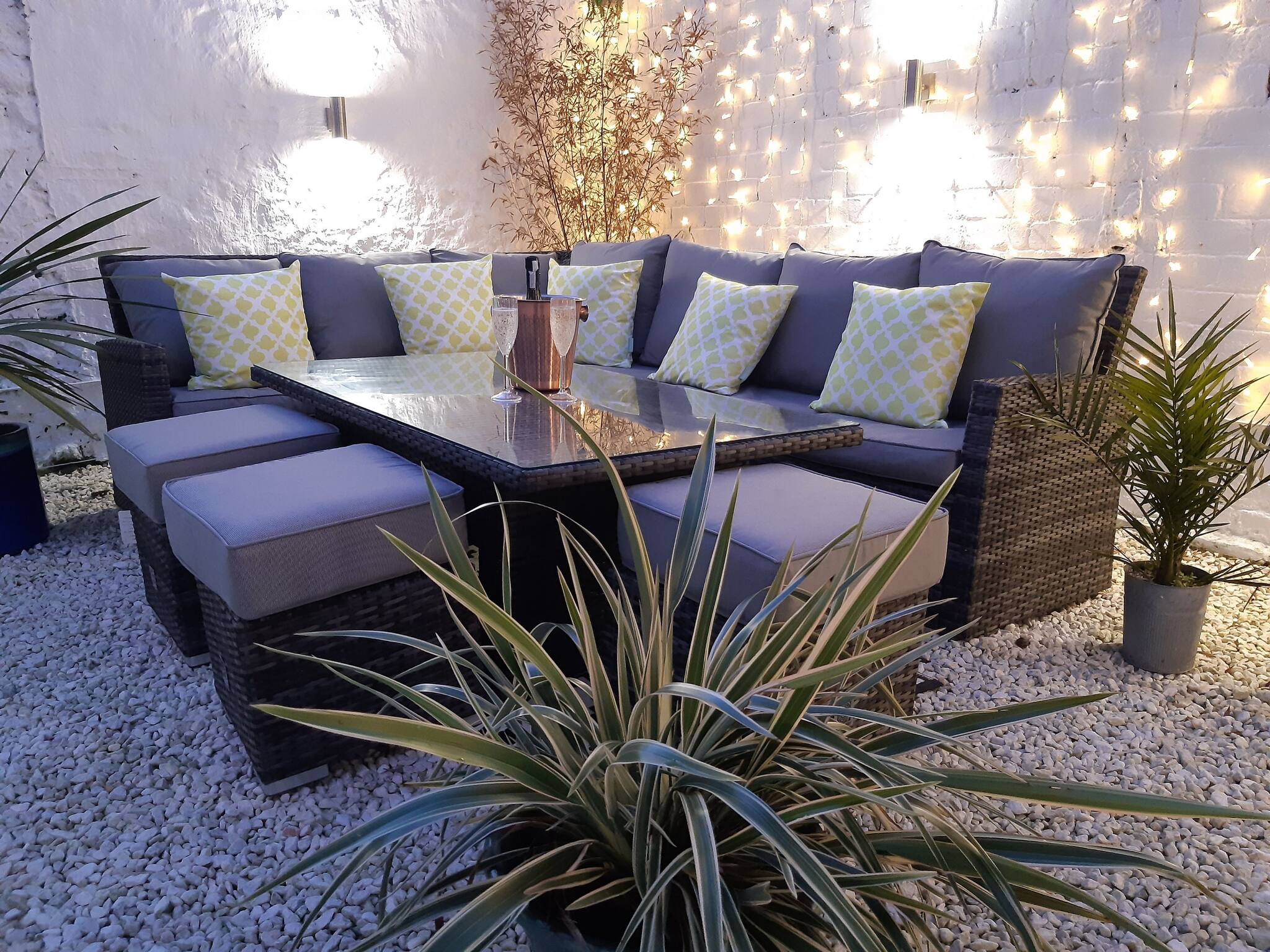 The ground floor of the house offers a spacious open-plan living-room with a log burner, dining and well equipped kitchen area which opens out into the comfortably furnished private courtyard where you can all relax. Why not have an outdoor breakfast, BBQ lunch or evening drinks in a stylish setting, weather permitting!