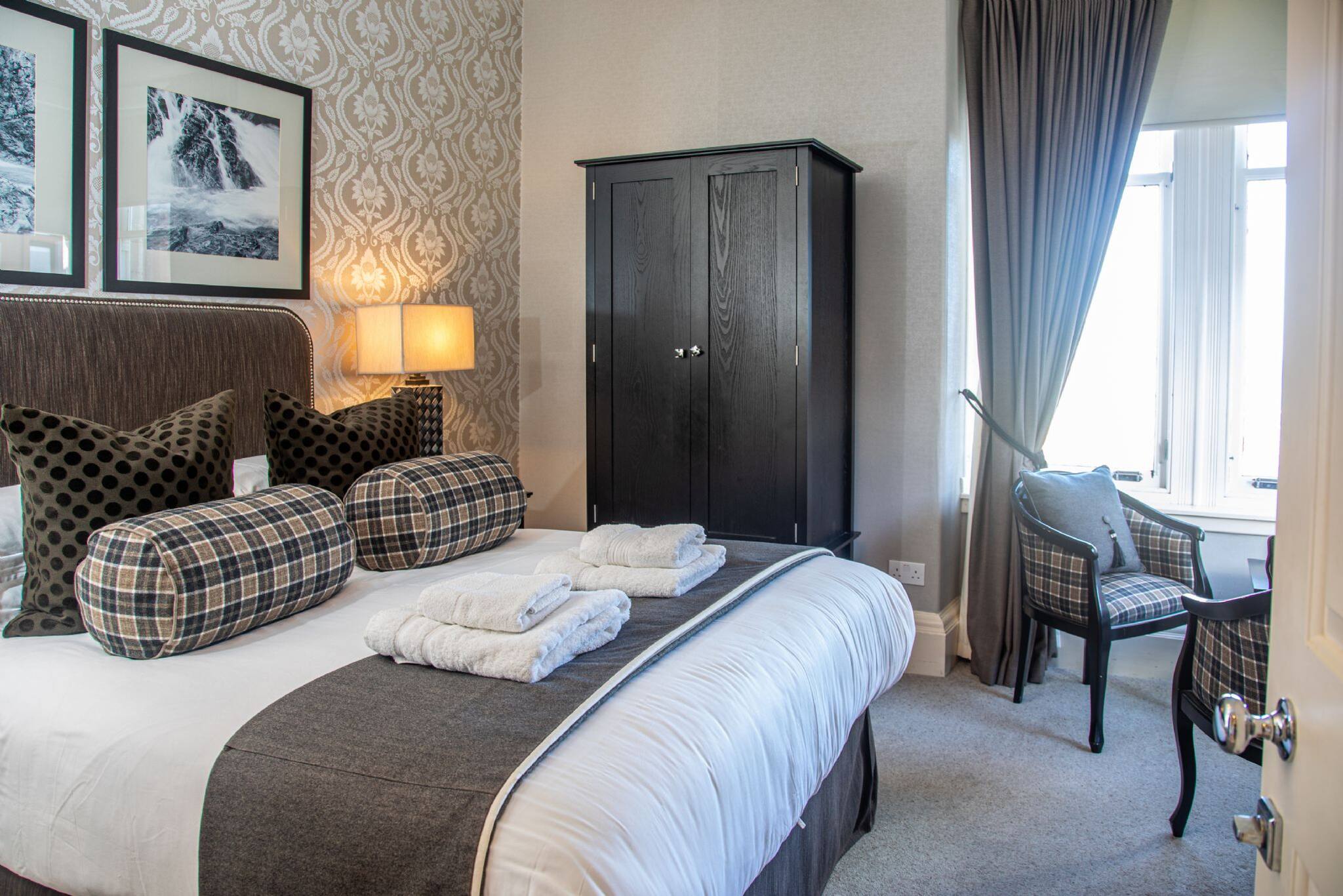 1 x double bedroom with sea view, ensuite and shower, flat screen tv. Twin chairs & table in the corner bay window.