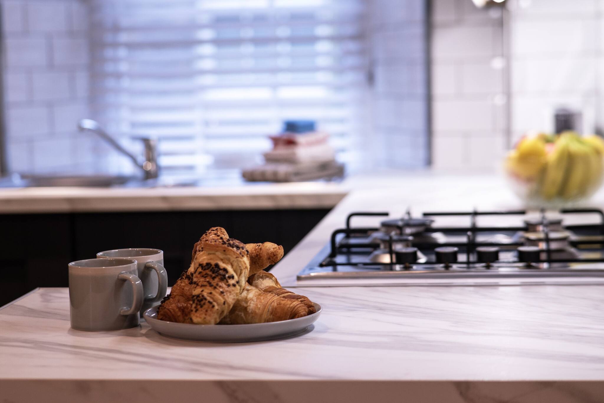 Fully Equipped Kitchen: Gas hob, oven, fridge, microwave, coffee machine, kettle, and all essential cookware