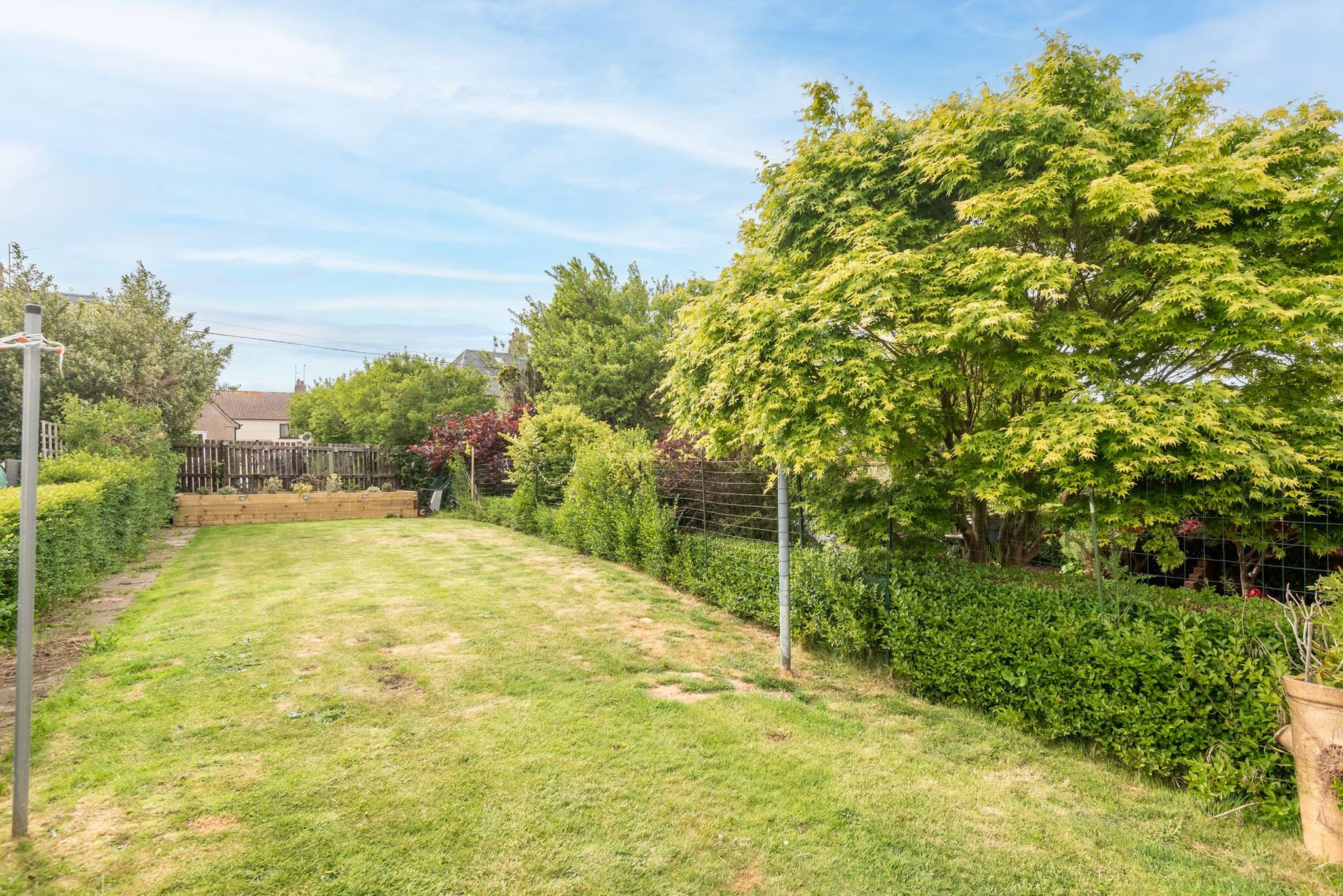 Golf Retreat is a spacious, detached property situated on a quiet cul-de-sac just a mile or so from the heart of St Andrews — superb for families or couples hoping to explore the beaches, cafés, golf courses, and historical attractions in the town, and also looking to enjoy a peaceful and relaxed getaway. The master bedroom boasts a super king bed, and there are also two twin rooms, meaning that the property sleeps up to six guests. All beds are zip and link for more flexibility. Two small dogs are welcome if you want to extend your party! The south facing, landscaped garden is accessed via double doors in the living room and boasts a delightful decked and patio area. The secluded garden is one of the property's best features, and has been designed to enable guests to enjoy slow morning coffees, al fresco lunches, evening drinks, and relaxed barbecues. In the case of inclement weather, there's a lovely dining area inside and a well-equipped kitchen with a dishwasher, microwave, oven, and cooking utensils. The shower room is also on the ground floor, and toiletries (shampoo,shower gel,body lotion and soap) are provided.