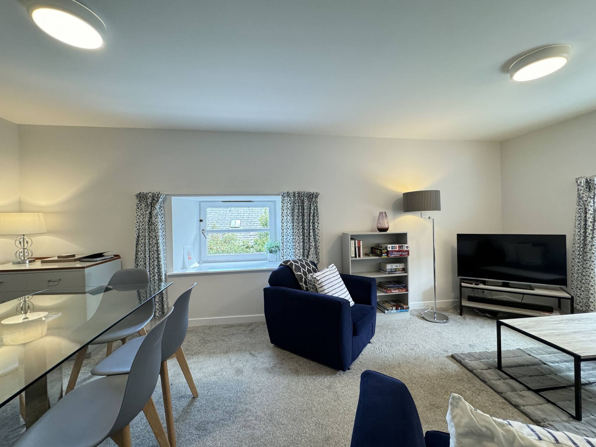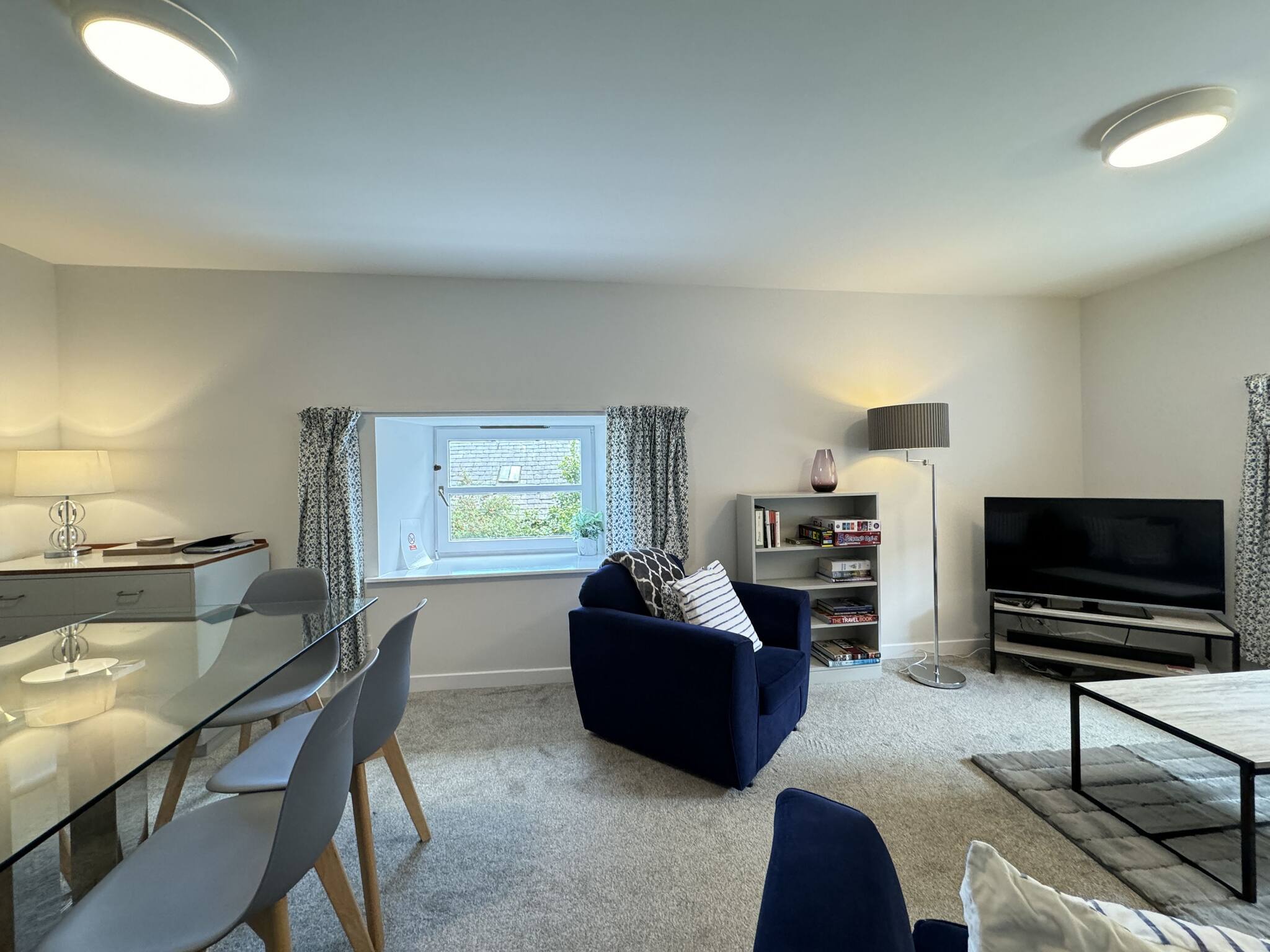 Spacious Living Area: Comfortable seating, smart TV, and fast Wi-Fi