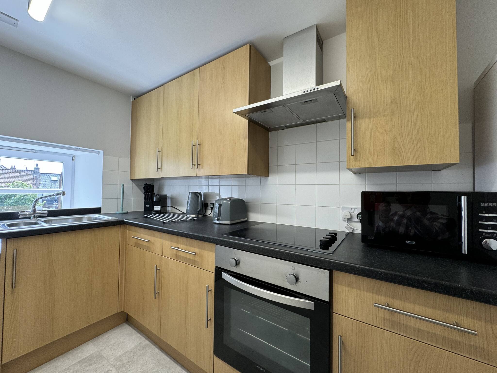 Fully Equipped Kitchen: Gas hob, oven, fridge, microwave, coffee machine, kettle, and all essential cookware