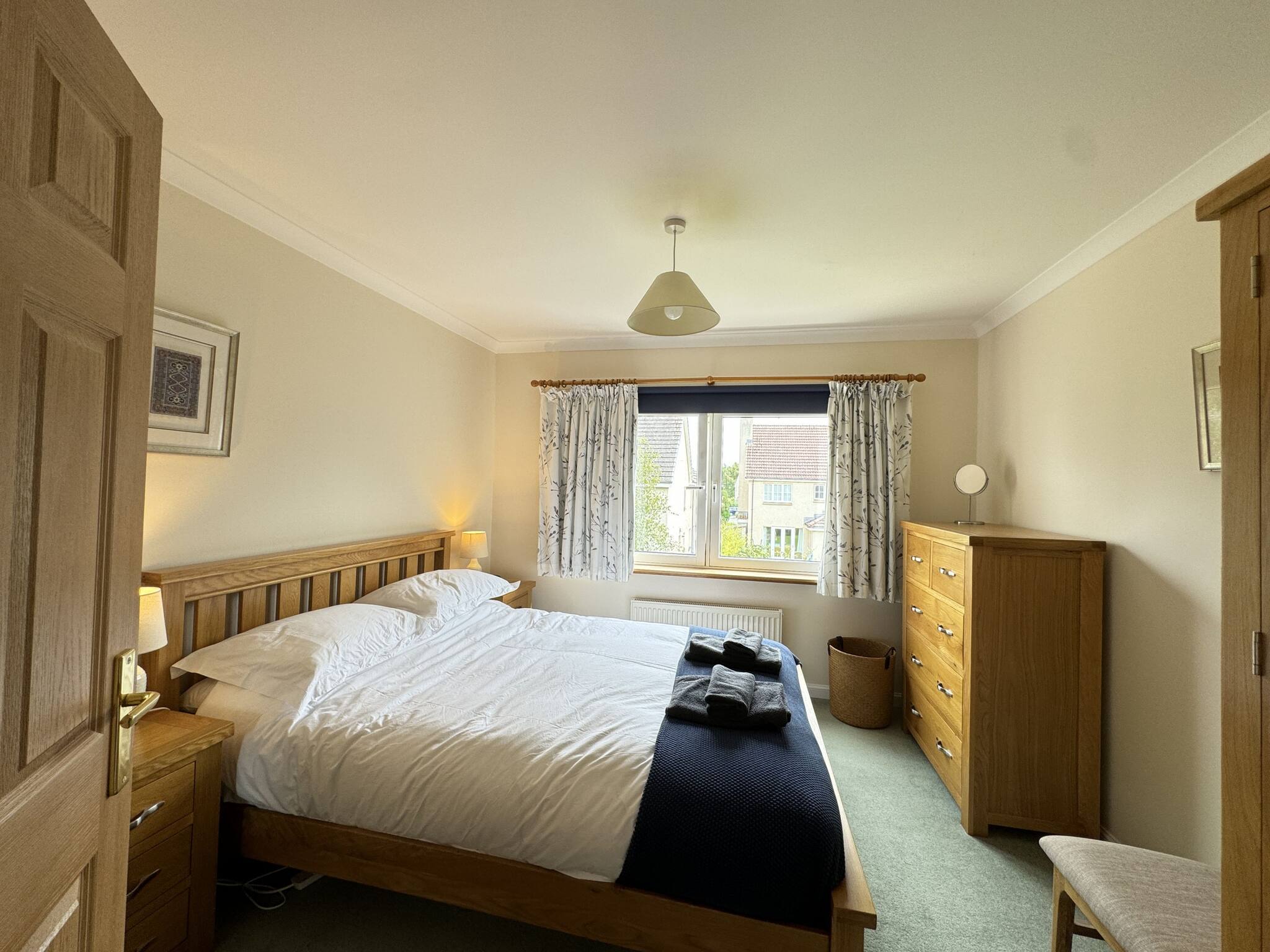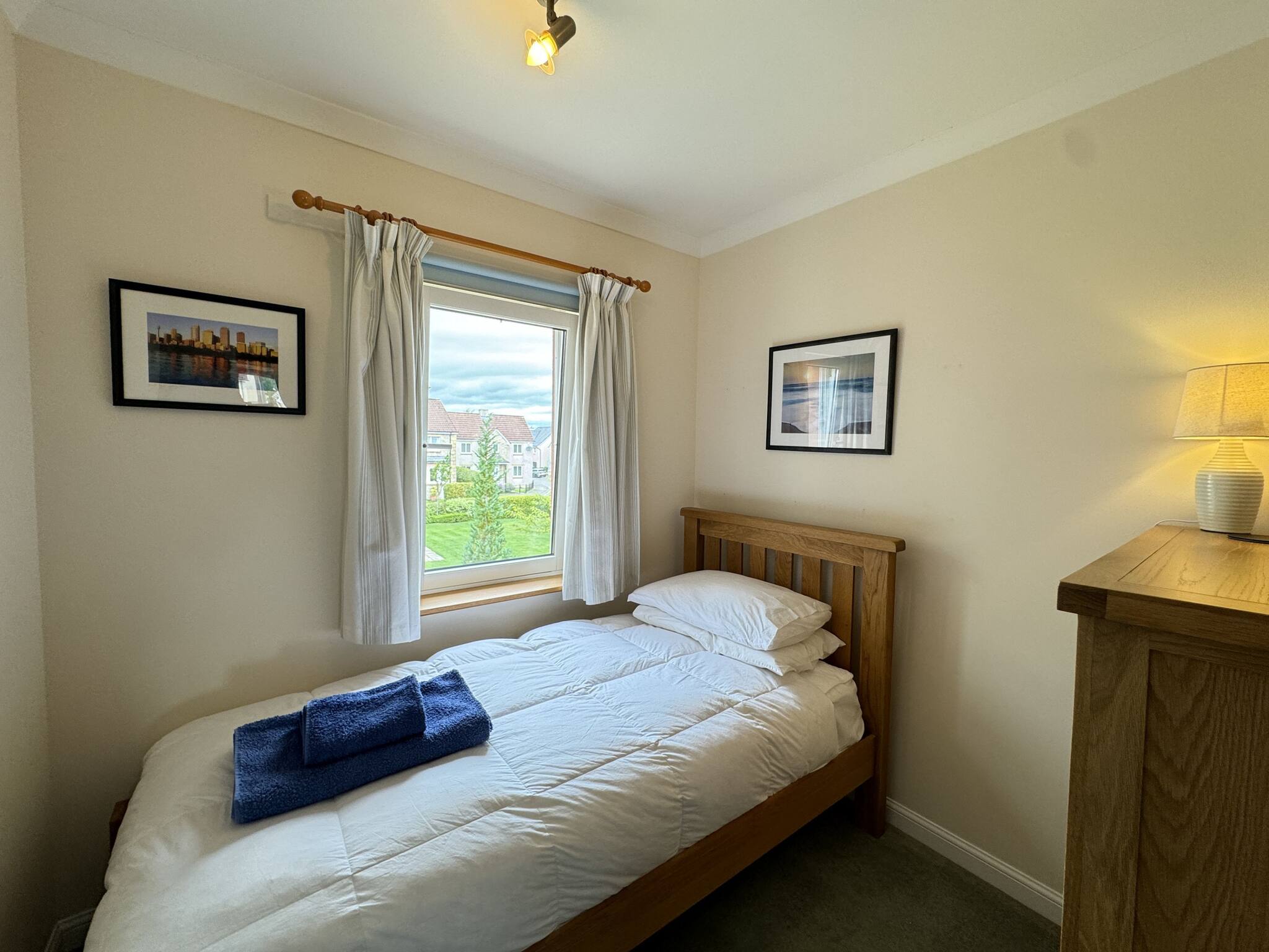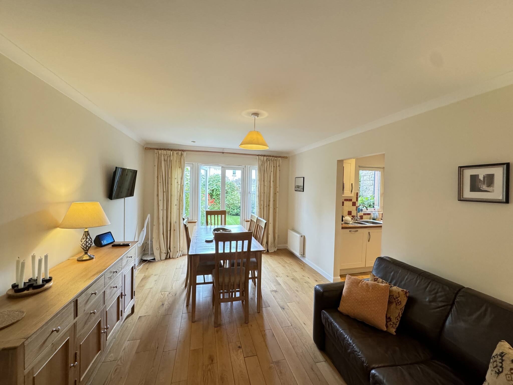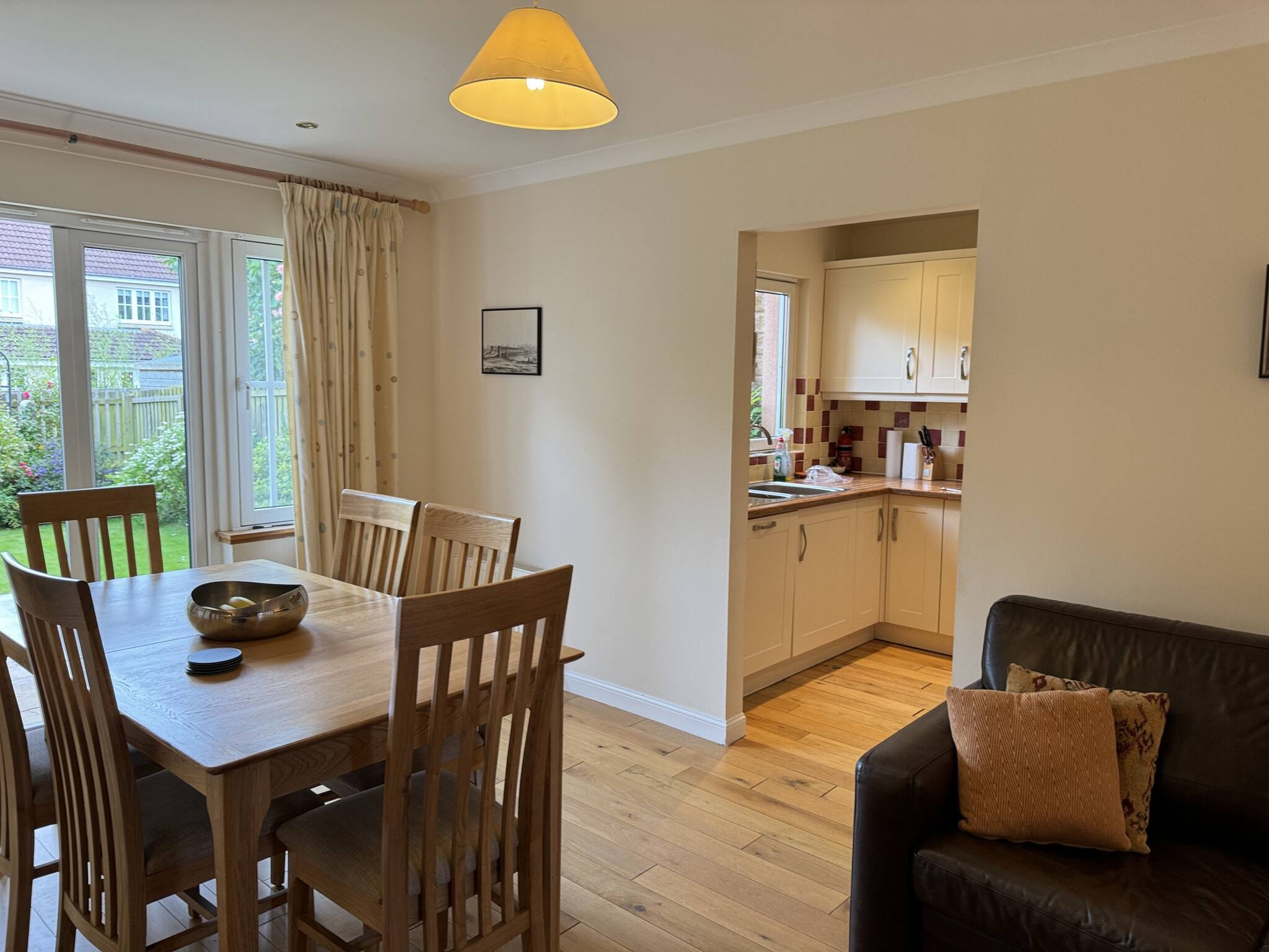 With abundant natural light, the spacious lounge, open-space kitchen and dining with access to the back garden, is an ideal base to explore St Andrews. This quiet 4 bed sanctuary includes one king sized bedroom with a modern en-suite shower, a further king-size bedroom, plus two single bedrooms. A pull-out bed is available for one of the single bedrooms, which can make it into a twin bed. The family bathroom has been upgraded with tasteful modern white vanity units and an overhead shower in the bath. Step into the serene private garden out back, where you can unwind and enjoy the lush green lawn. The property is a five minute car ride into Town and the golf courses, or a leisurely 25 minute quiet and picturesque walk through the Lade Braes into Town.