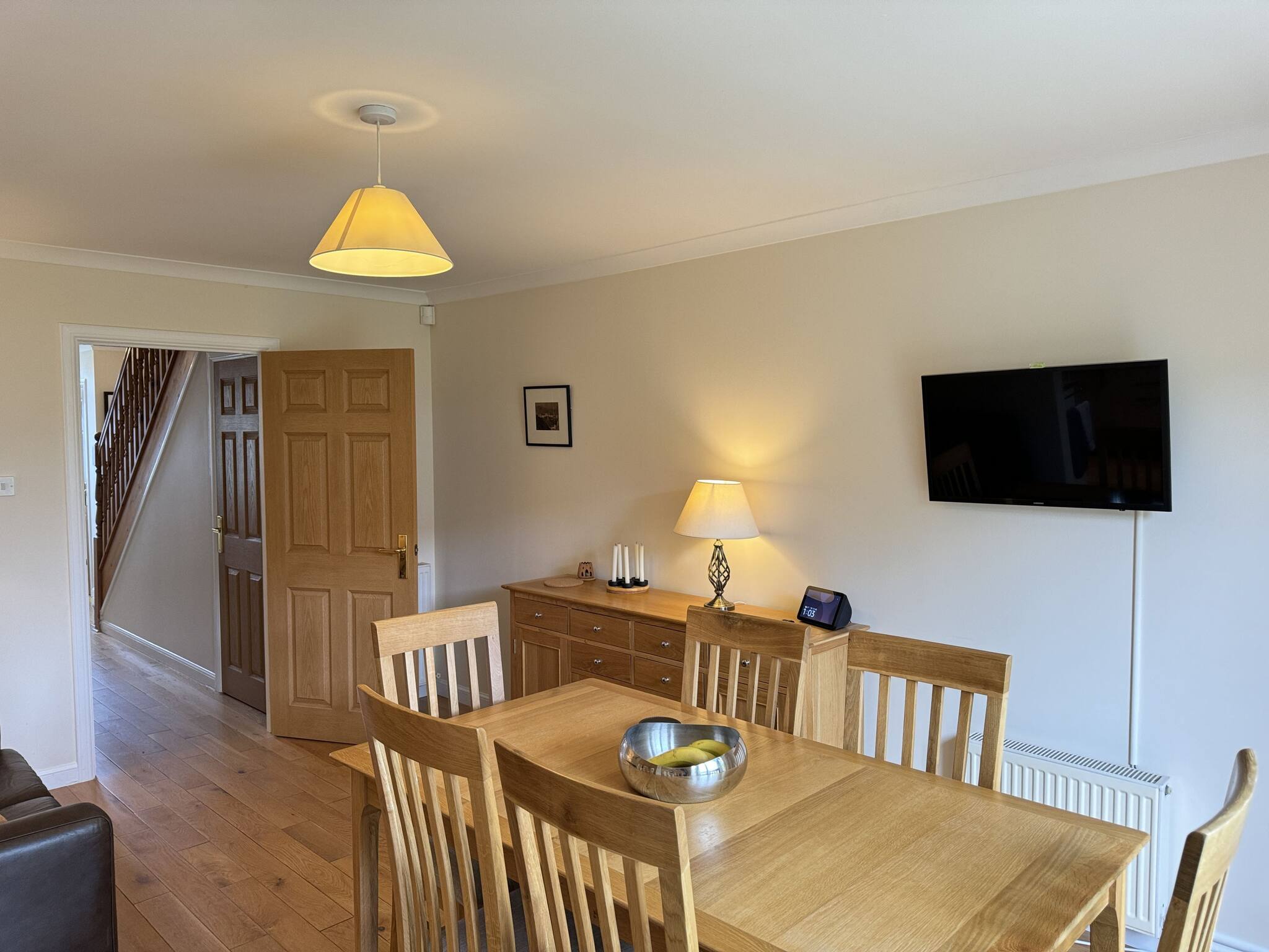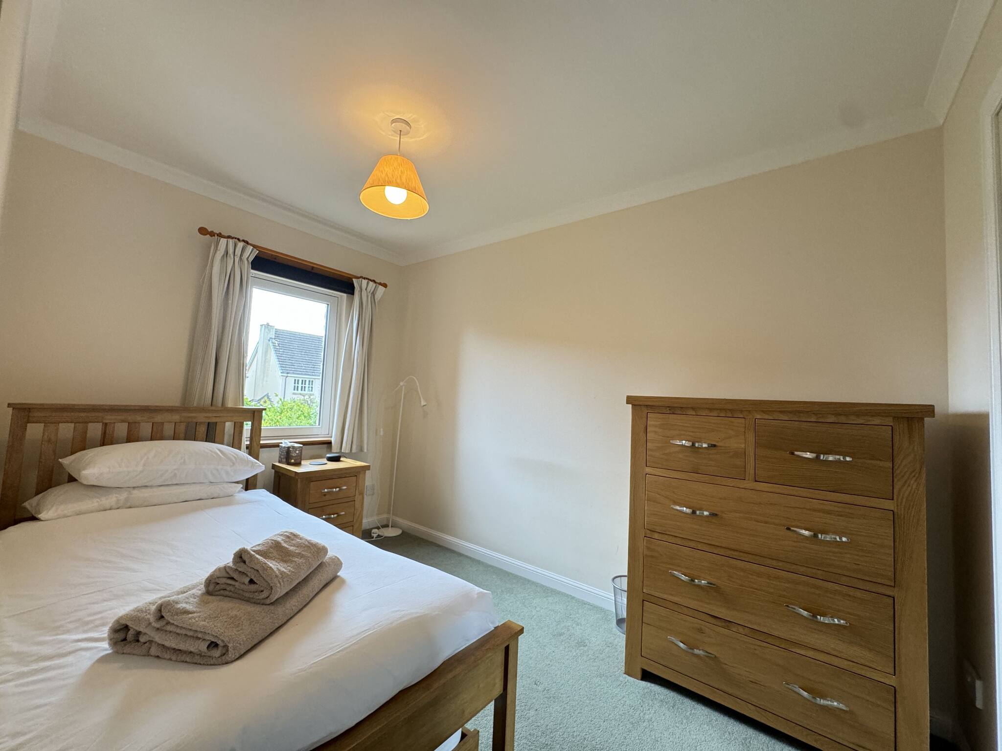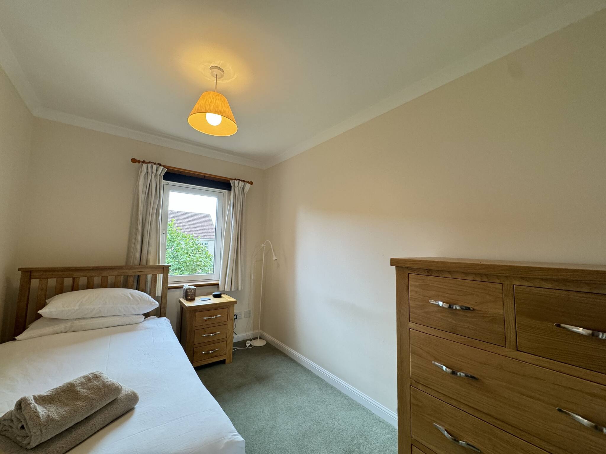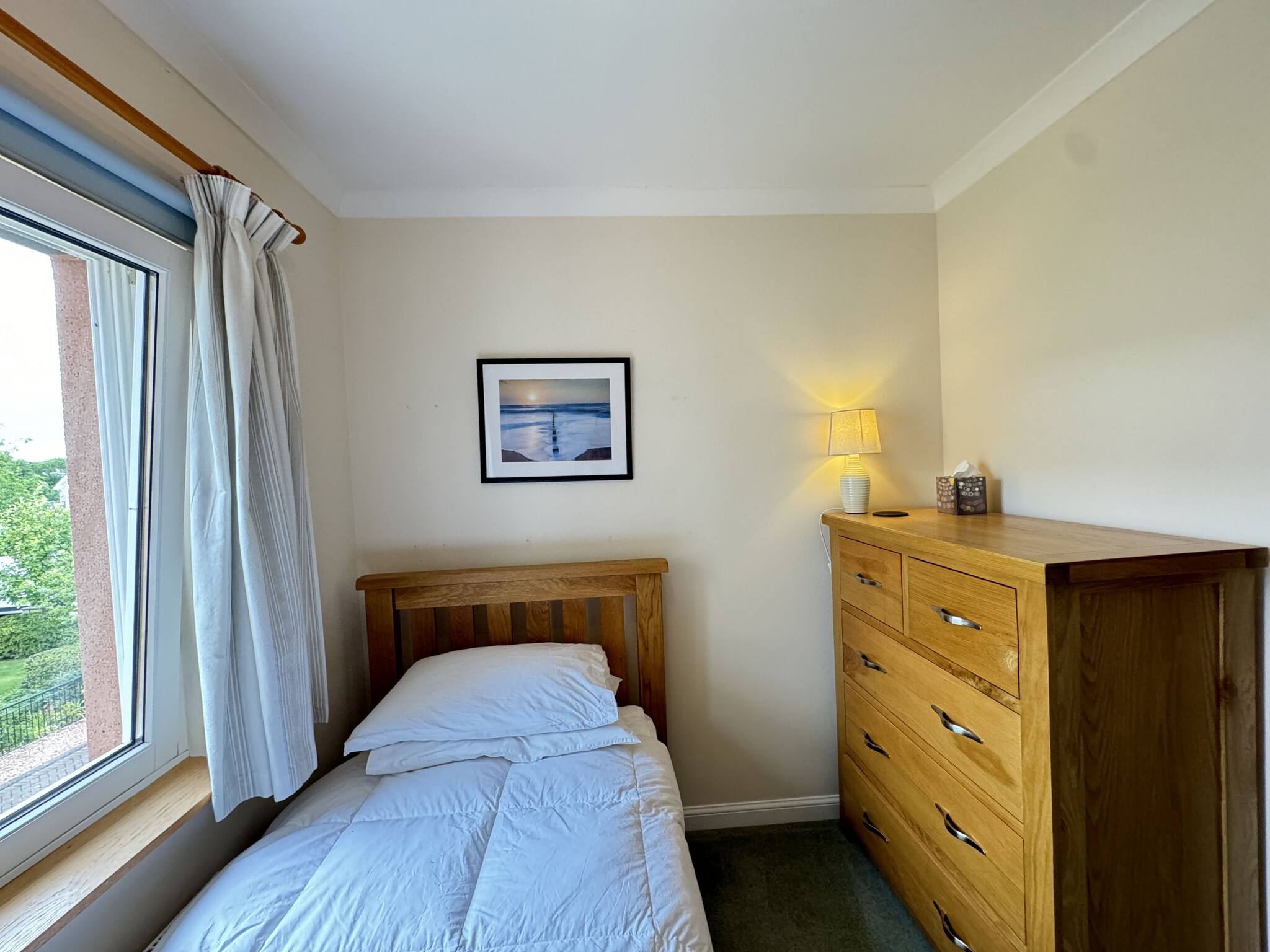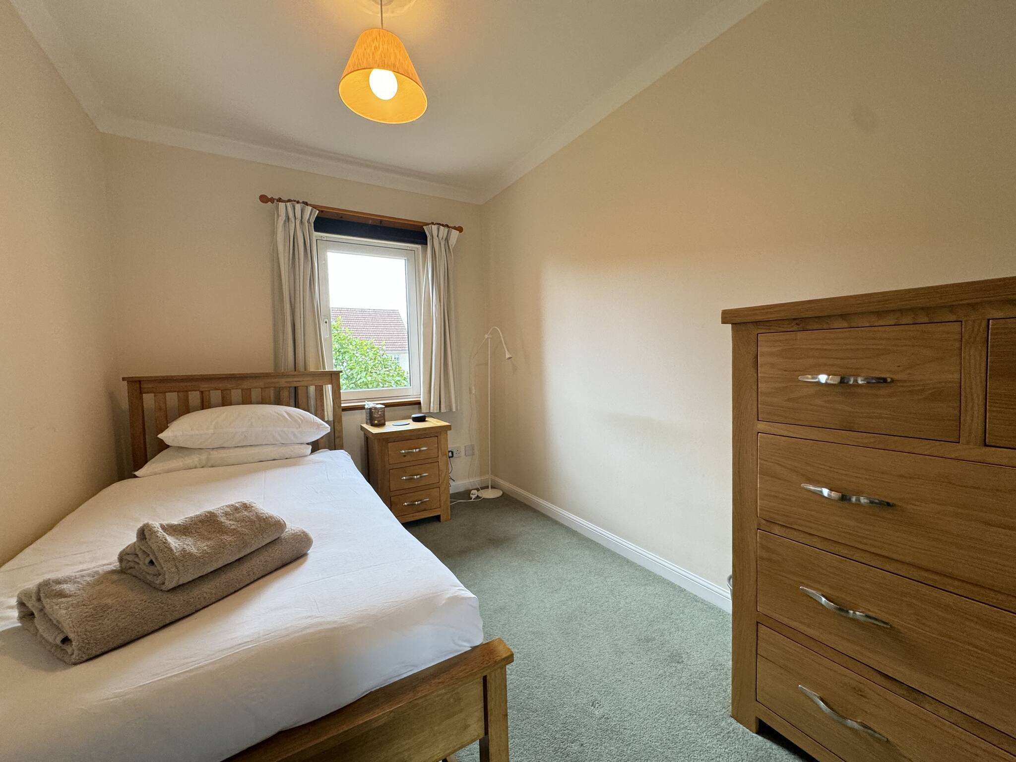 With abundant natural light, the spacious lounge, open-space kitchen and dining with access to the back garden, is an ideal base to explore St Andrews. This quiet 4 bed sanctuary includes one king sized bedroom with a modern en-suite shower, a further king-size bedroom, plus two single bedrooms. A pull-out bed is available for one of the single bedrooms, which can make it into a twin bed. The family bathroom has been upgraded with tasteful modern white vanity units and an overhead shower in the bath. Step into the serene private garden out back, where you can unwind and enjoy the lush green lawn. The property is a five minute car ride into Town and the golf courses, or a leisurely 25 minute quiet and picturesque walk through the Lade Braes into Town.